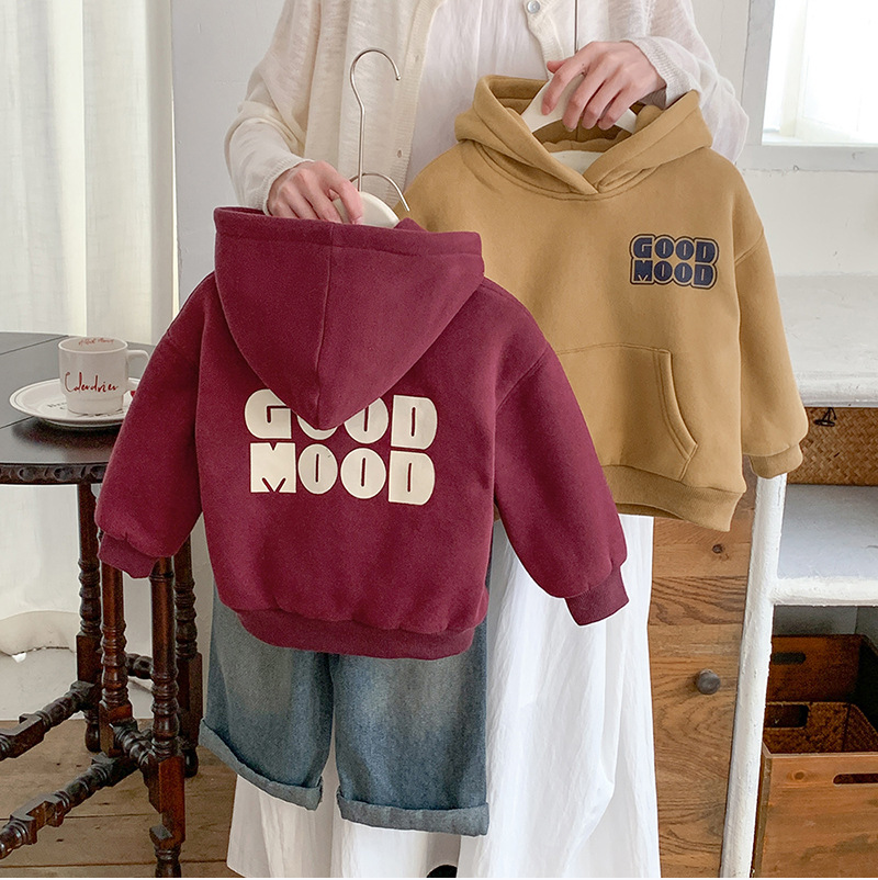아동용 양털 스웨트 셔츠 2024 새로운 가을, 겨울 의류 한국 스타일 외국 스타일 소년 후드 양털 스웨트 셔츠 두꺼운 재킷 유행스토어 가기