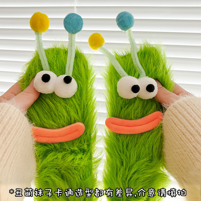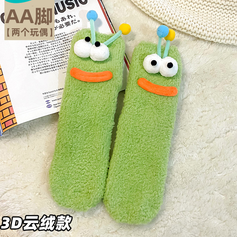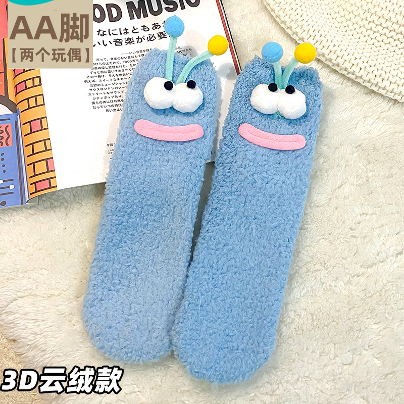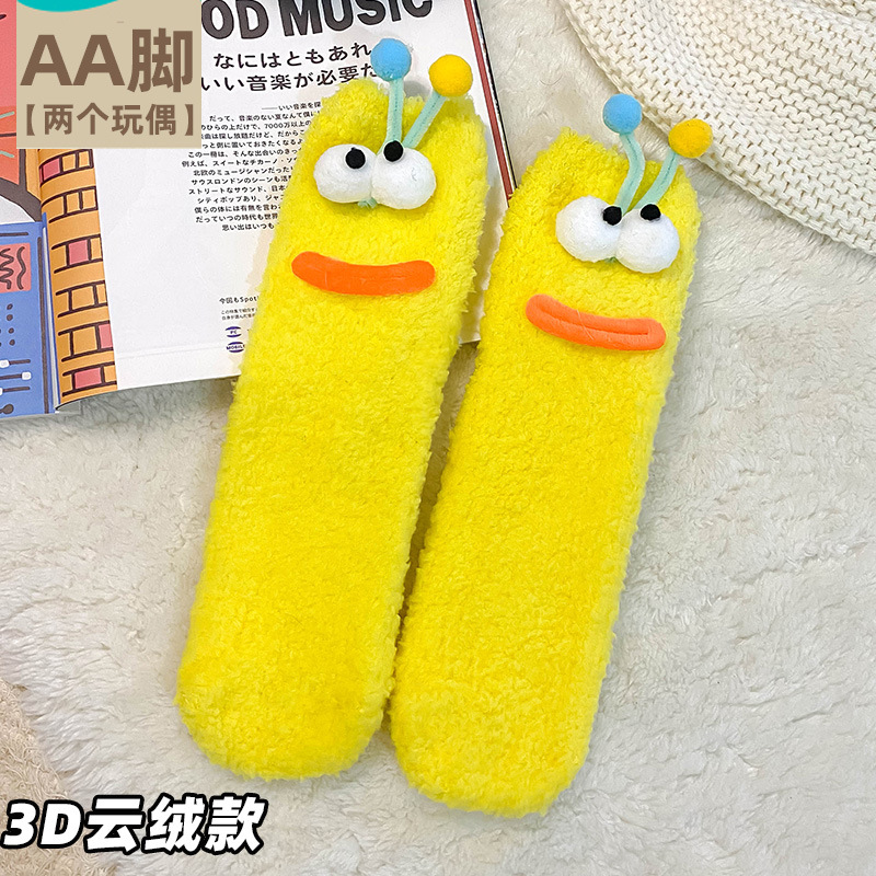 밍크 벨벳 양말 여성의 겨울 기모 바닥 양말 가을과 겨울 두꺼운 따뜻한 애벌레 재미있는 수면 플러시 양말스토어 가기