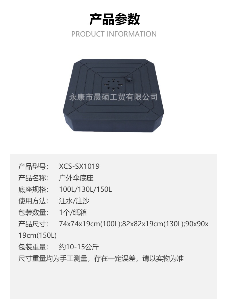 안정적인 큐브형 야외 파라솔 받침대 로마형 물탱크 대형 파라솔 받침대 정원용 파라솔 받침대 130L 바퀴 달린 이동식스토어 가기
