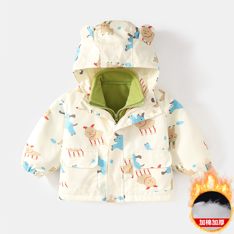어린이 코트 3 대 1 소년 파커, 새로운 누빔안감 가을과 겨울 방풍 분리형 아기 아동복 세트