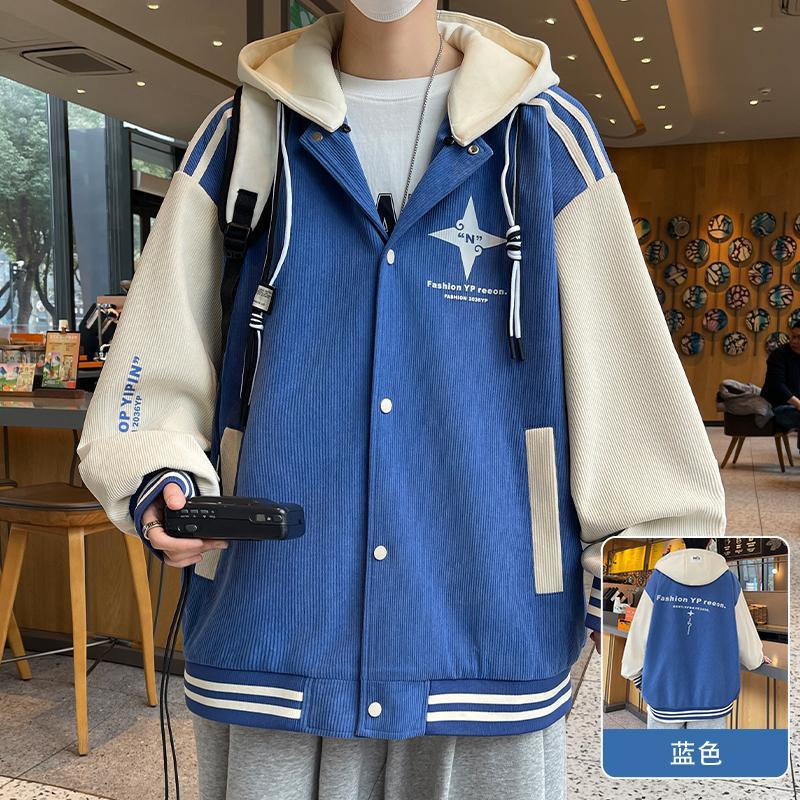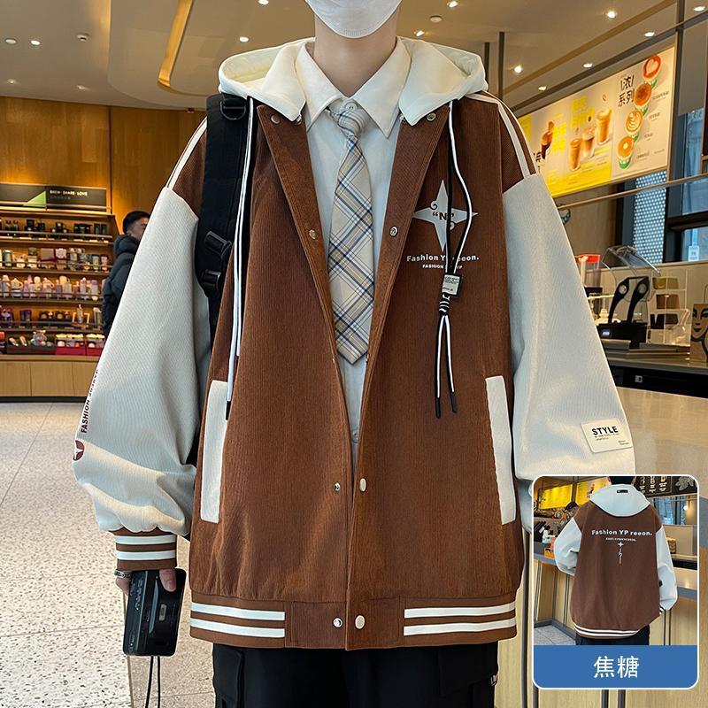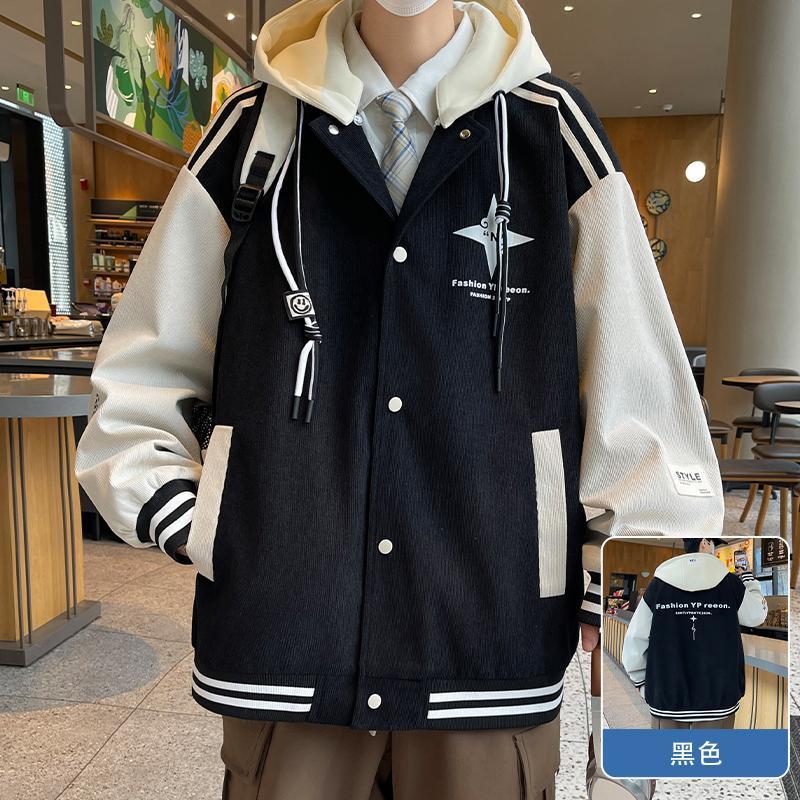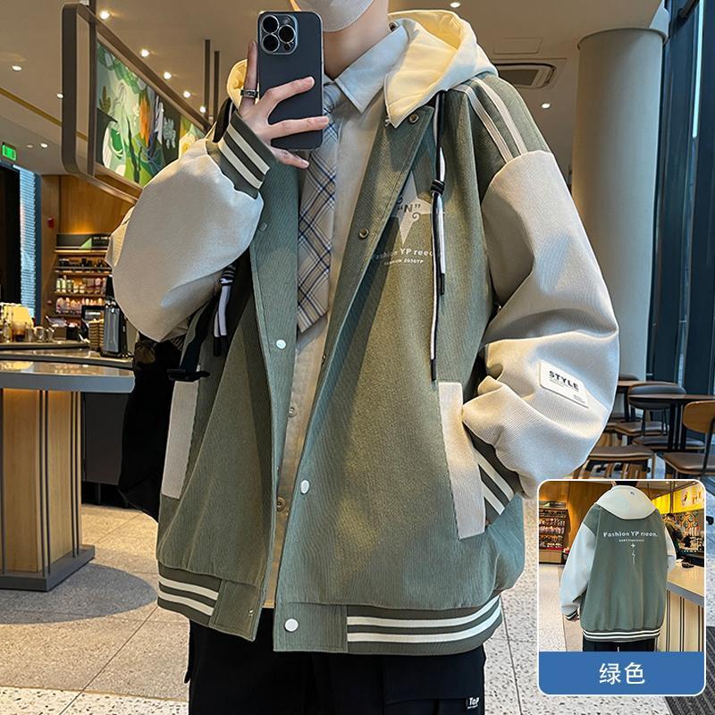 분리 가능한 모자 자켓 남자의 봄과 가을 패션 브랜드 느슨한 캐주얼 자켓 후드 핸섬 청소년 야구 세트 탑스토어 가기