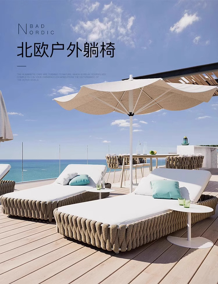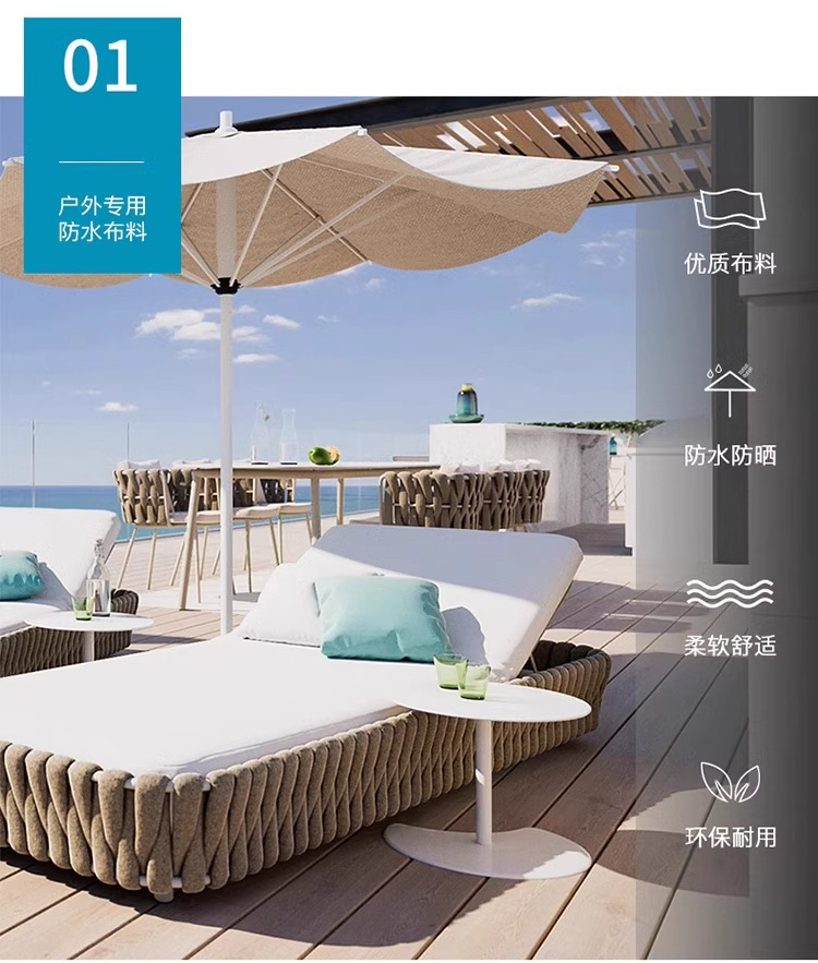 야외 야외 야외 수영장 Recliner 방수 태양 건조 호텔 홈스테이 리조트 비치 레저 알루미늄 합금 등나무 소파 침대스토어 가기