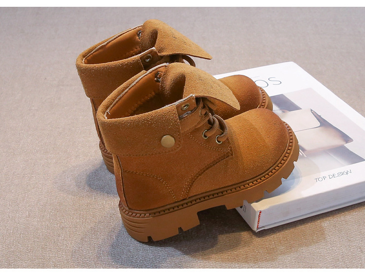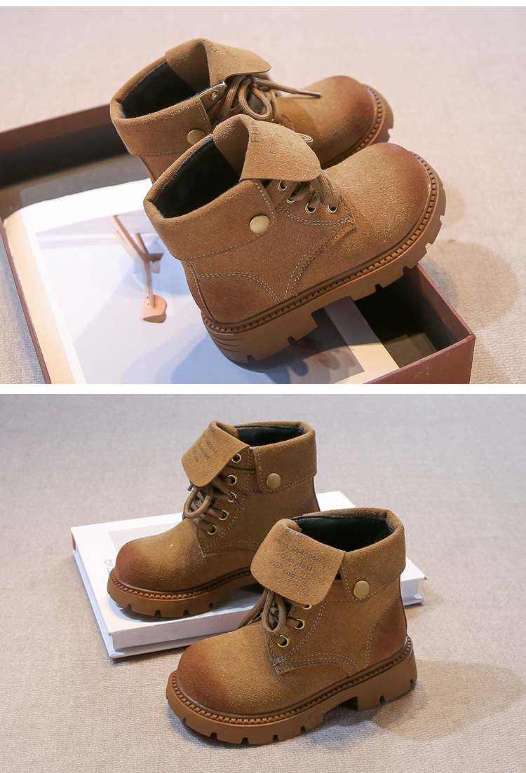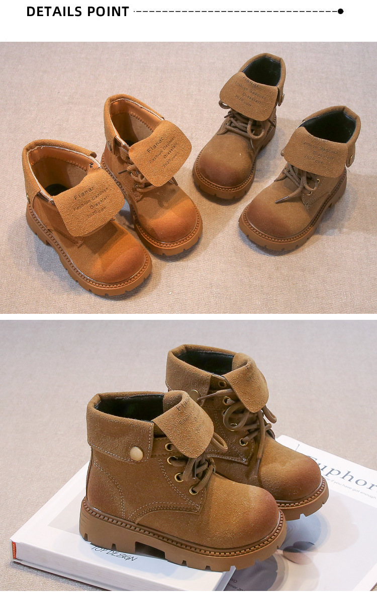 어린이 레트로 마틴 부츠 소녀 대황 부츠 2024 가을 및 겨울 새로운 도착 소년 부츠 옷깃 영국 팬 자동차 부츠
