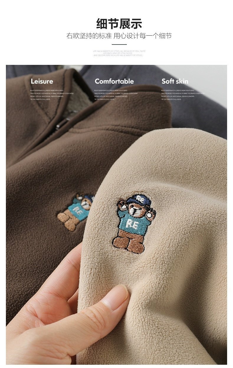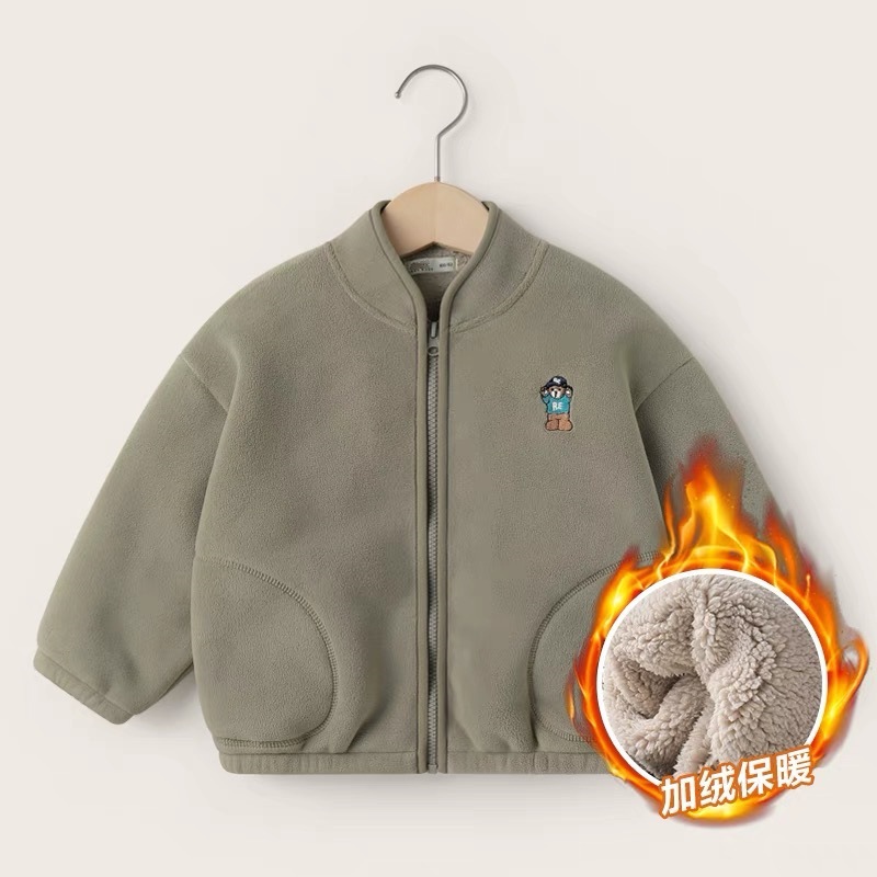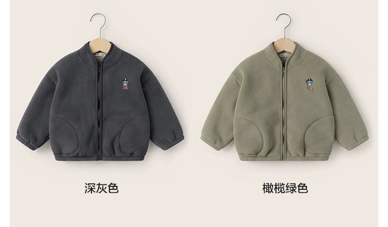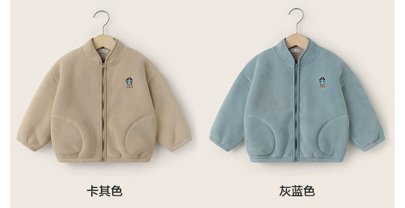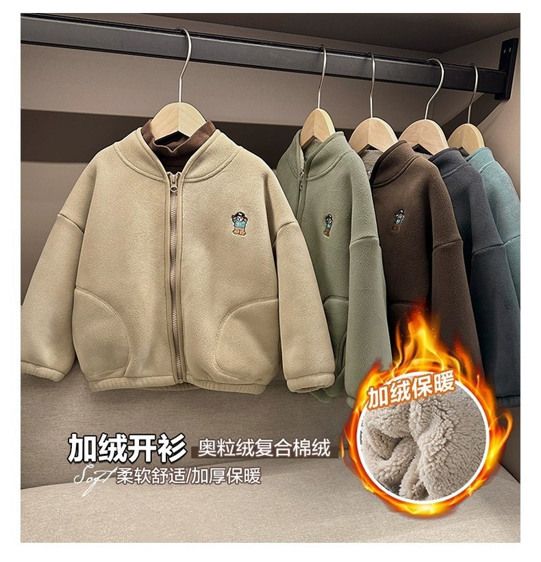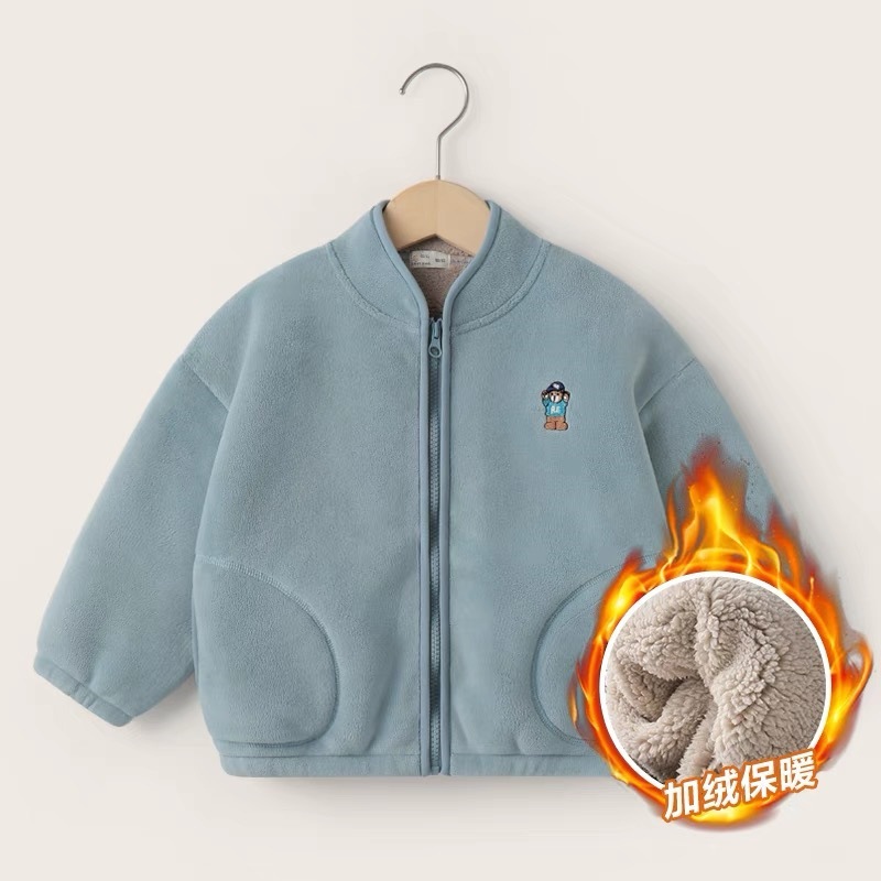 아동용 솔리드 컬러 자수 재킷 2024 오리 벨벳 복합 벨벳 두꺼운 가을, 겨울 아동 의류 스탠드 칼라 카디건스토어 가기