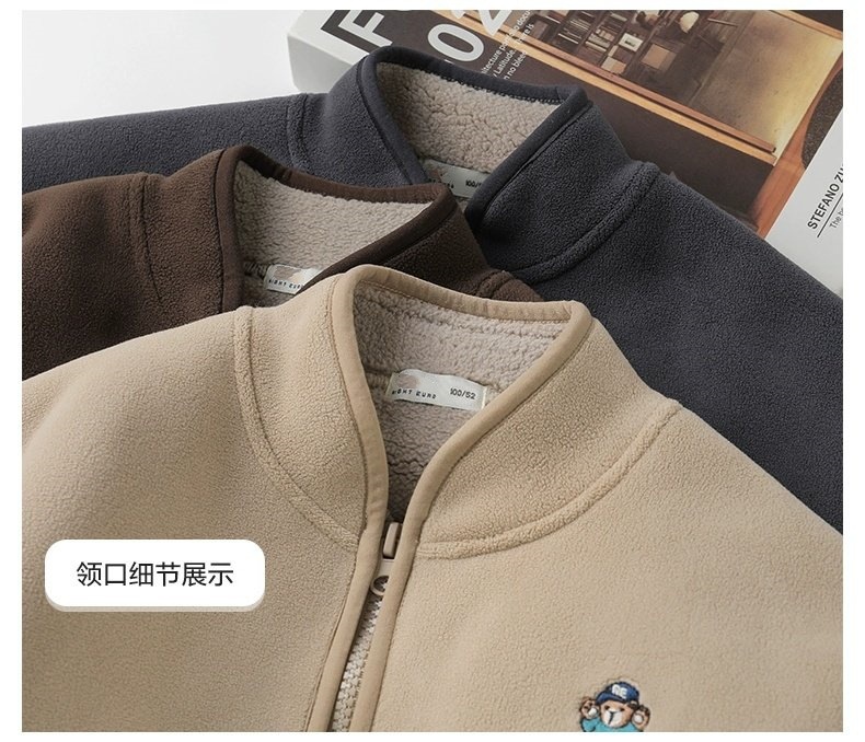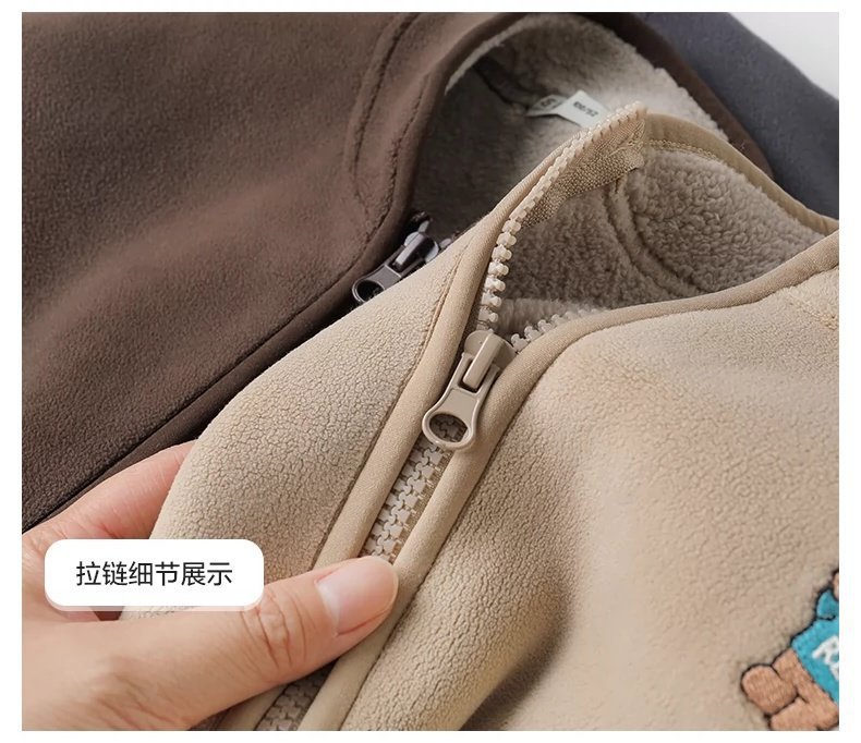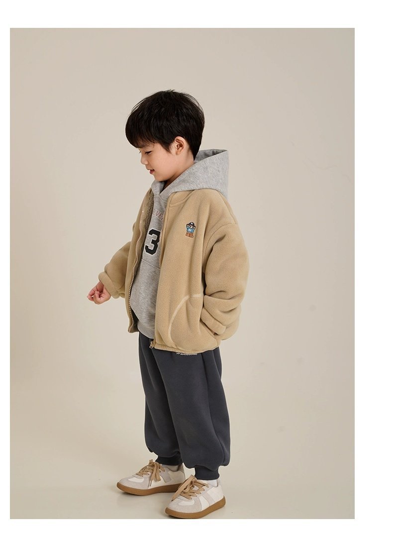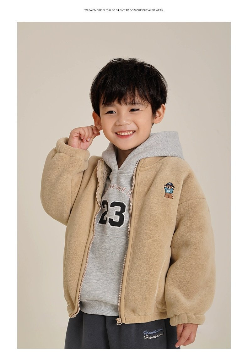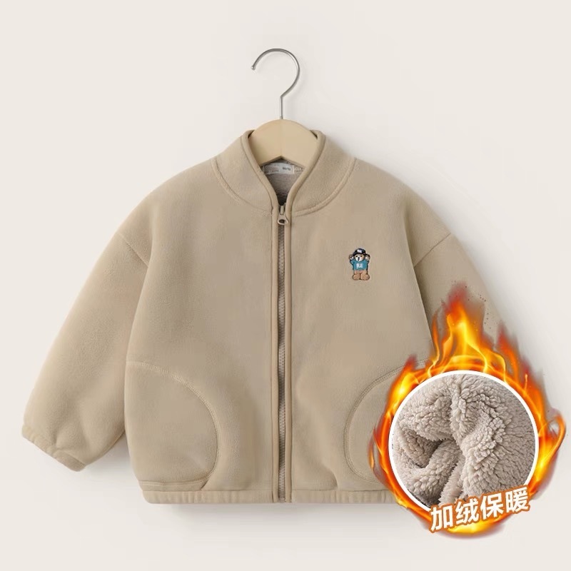 아동용 솔리드 컬러 자수 재킷 2024 오리 벨벳 복합 벨벳 두꺼운 가을, 겨울 아동 의류 스탠드 칼라 카디건스토어 가기