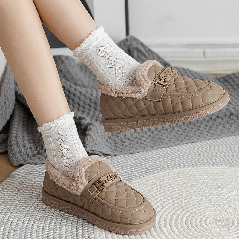 여성을위한 틈새 벨벳 작은 가죽 신발 2025 새로운 가을, 겨울 모피 신발 복고풍 영국 스타일 양털 로퍼 면화 신발스토어 가기
