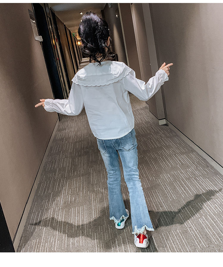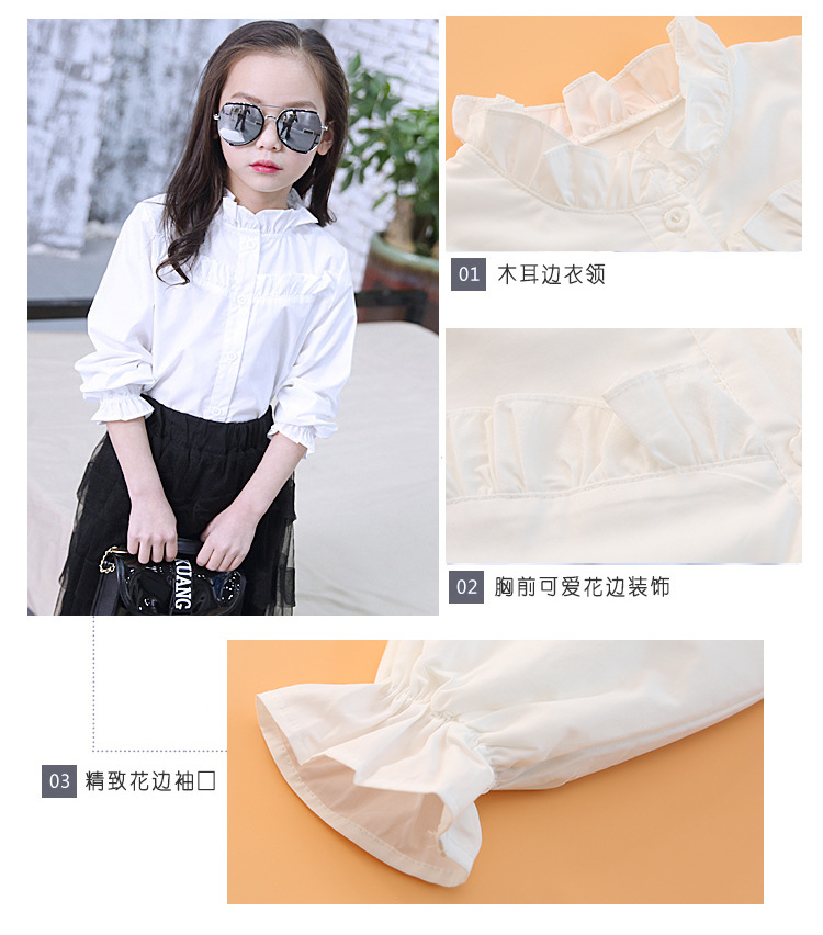 소녀 백면 셔츠 어린이 중 큰 어린이 봄과 가을 레이스 칼라 얇은 긴 소매 셔츠 화이트 베이스 셔츠스토어 가기