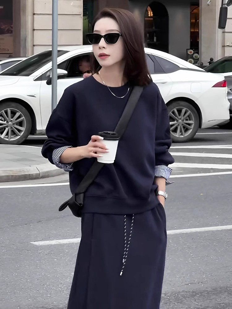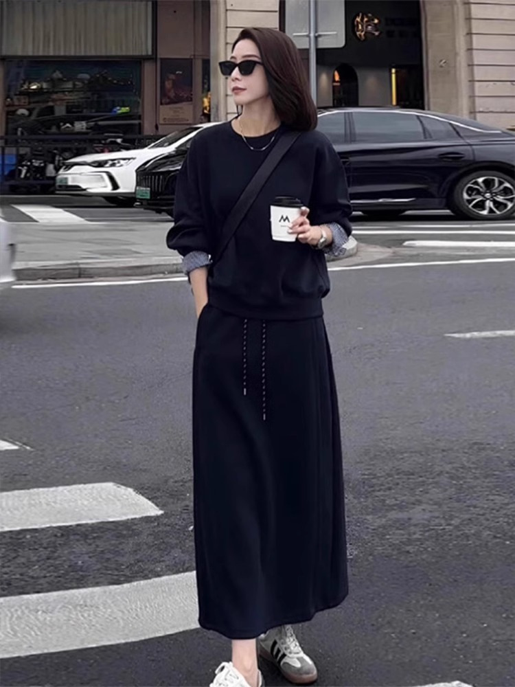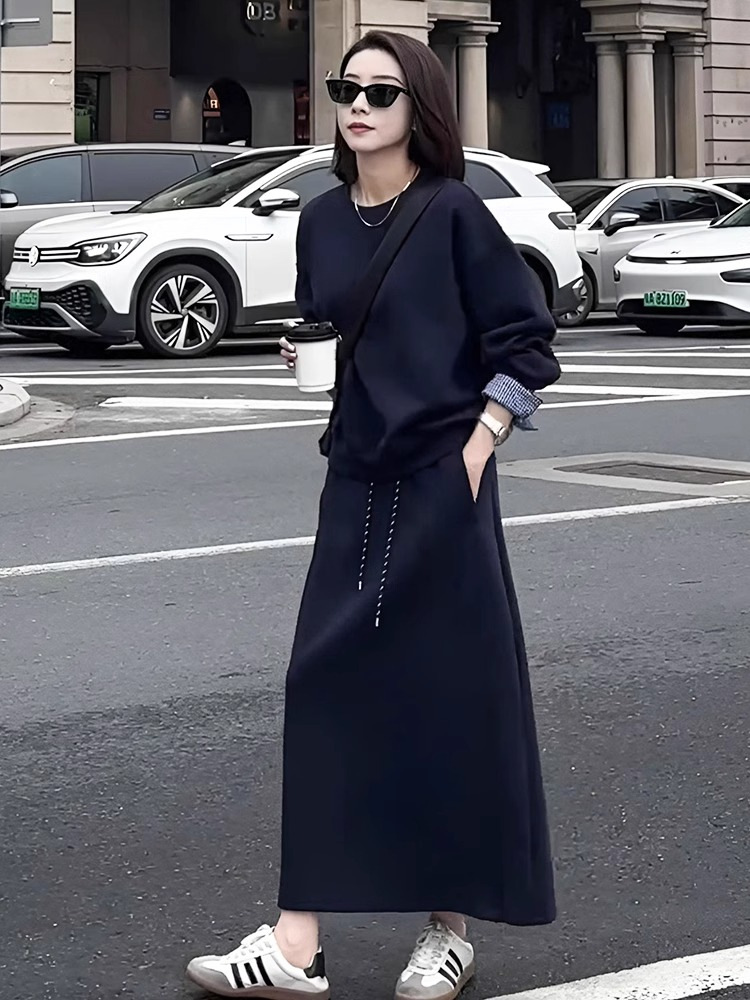 패션 세트 스커트 세트와 함께 이른 가을 게으른 바람 라운드 넥 스웨터 높은 허리 슬림 스커트 투피스 여성스토어 가기