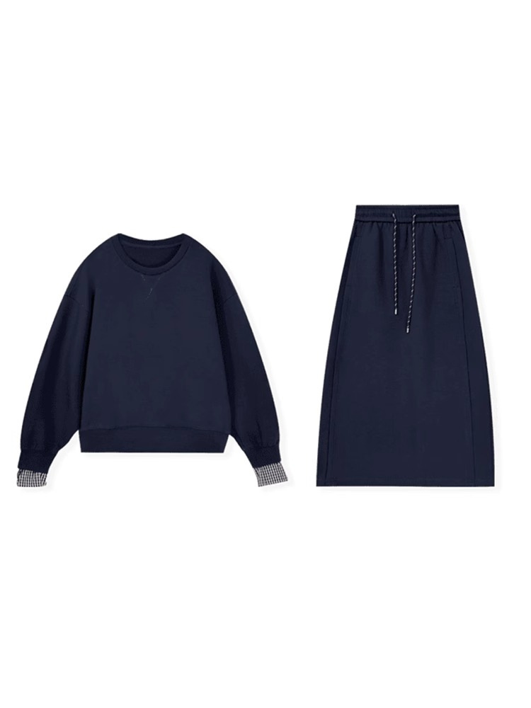 패션 세트 스커트 세트와 함께 이른 가을 게으른 바람 라운드 넥 스웨터 높은 허리 슬림 스커트 투피스 여성