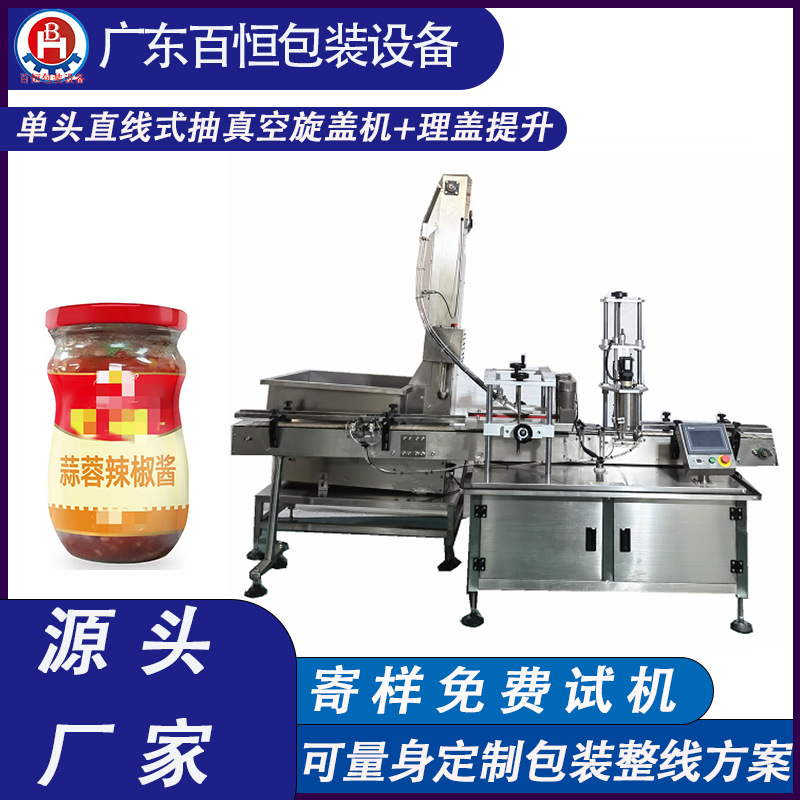 단일 헤드 선형 진공 캡핑 기계 유리 병 캡핑 기계 마늘 칠리 소스 유리 병 생산 라인