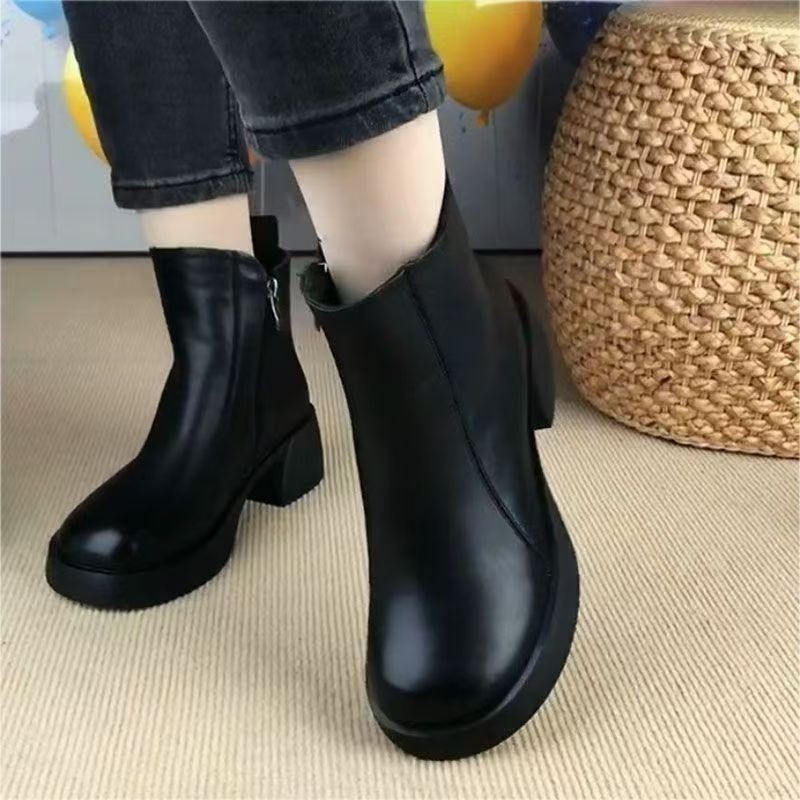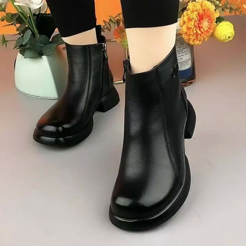 2024 가을 및 겨울 새로운 탑 레이어 Cowhide 라운드 헤드 레트로 컬러 광택 쇼트 부츠 여성 수제 여성 신발 마틴 부츠 올 매치 트렌디스토어 가기