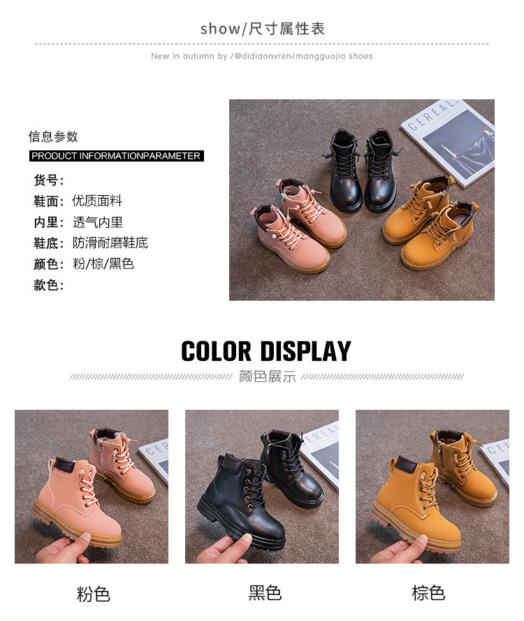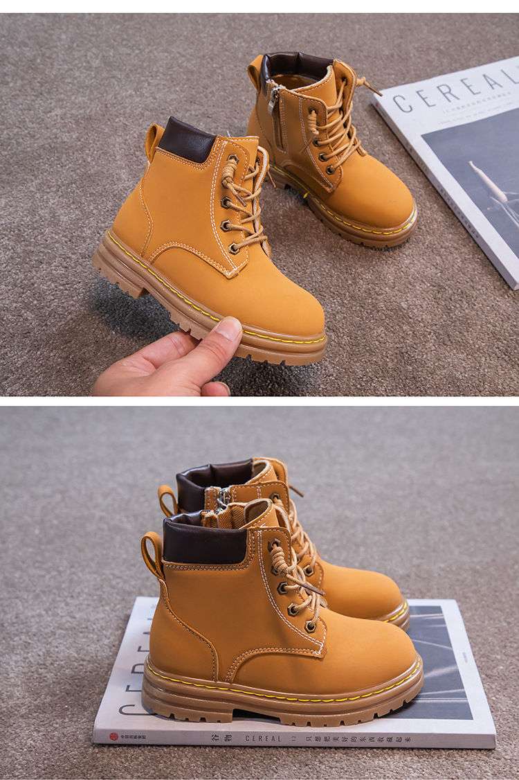 2023 년 가을 새로운 어린이 노란 부츠 소녀 마틴 부츠 어린이 발목 부츠 부드러운 바닥 캐주얼 소년 부츠