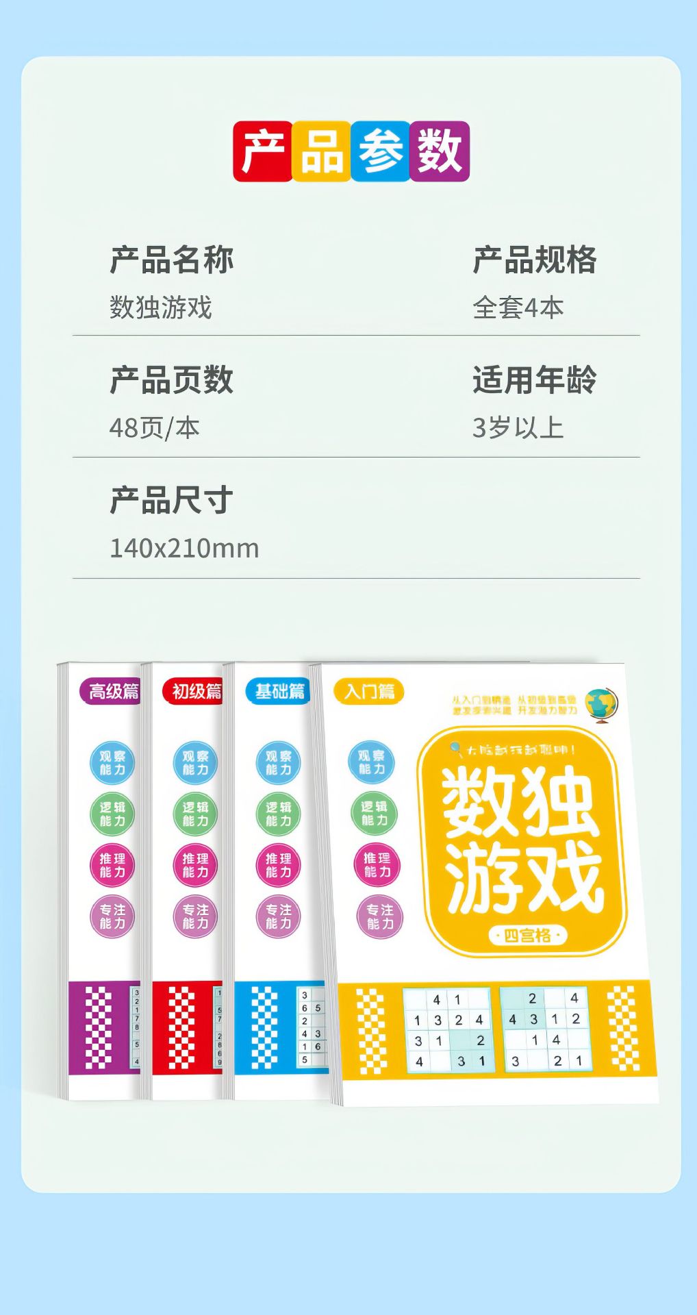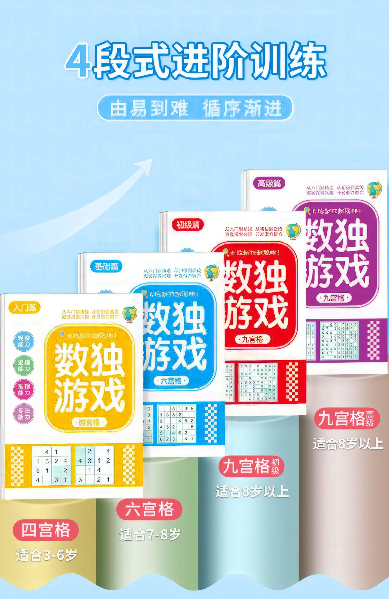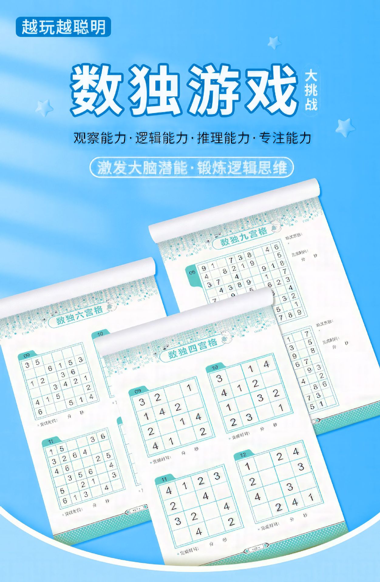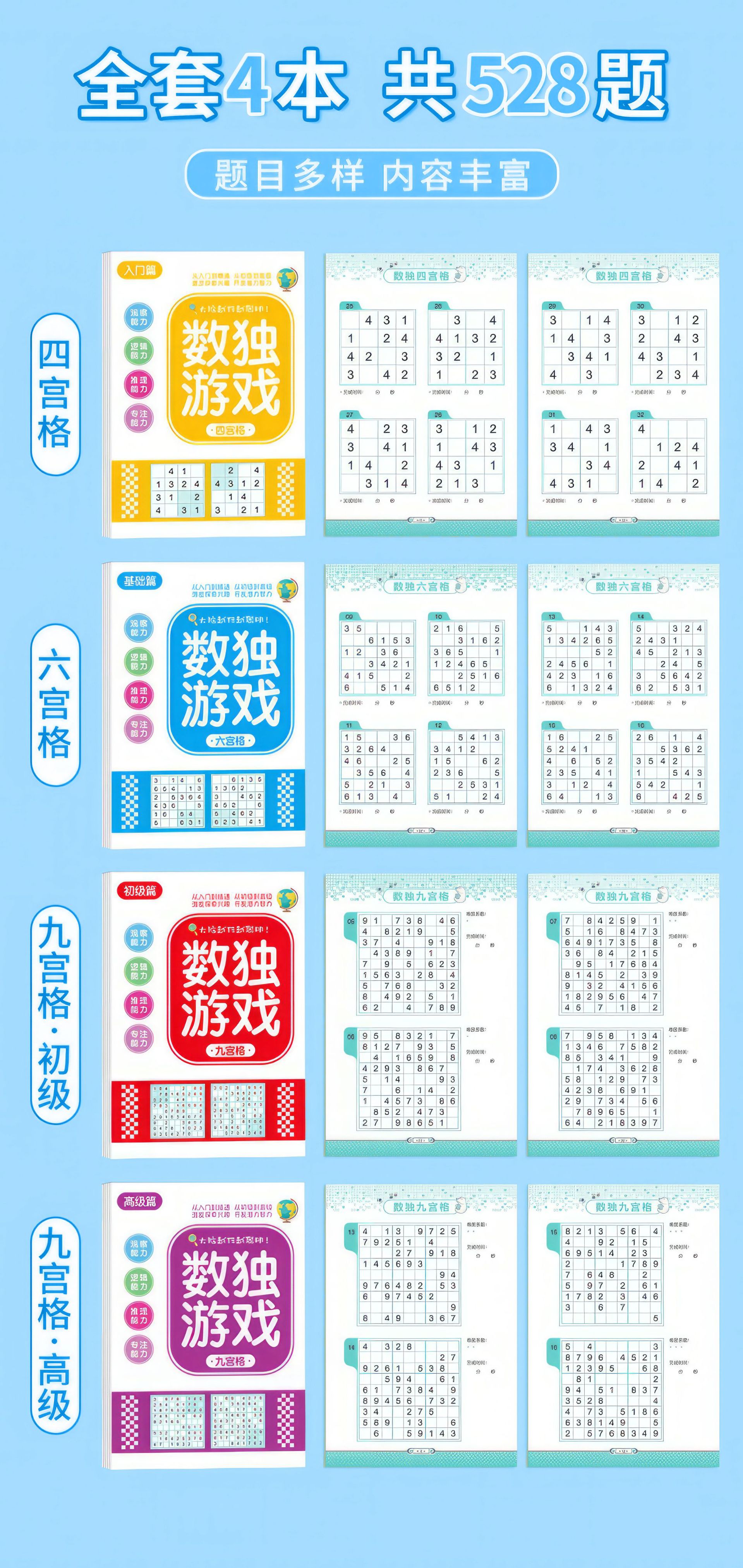 어린이 스도쿠 게임북 4 식스 나인 궁전 스도쿠 북 초등학교 학생 집중 훈련 교육 장난감 책