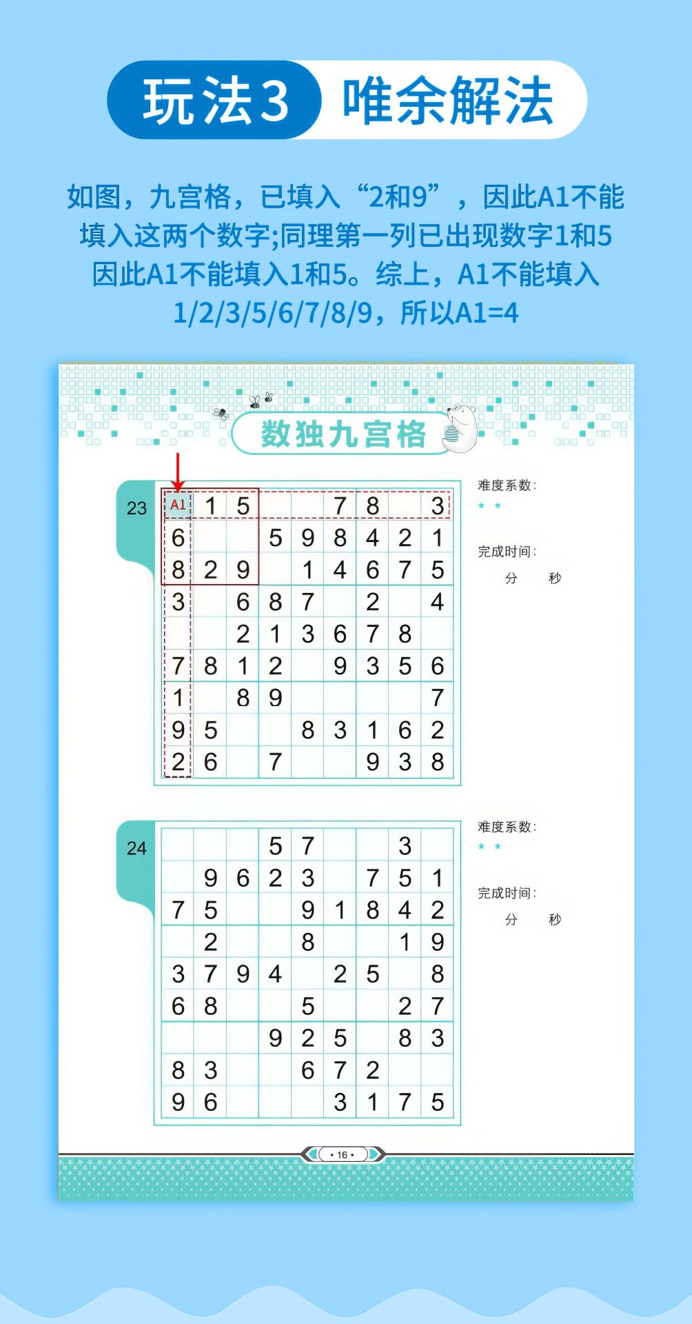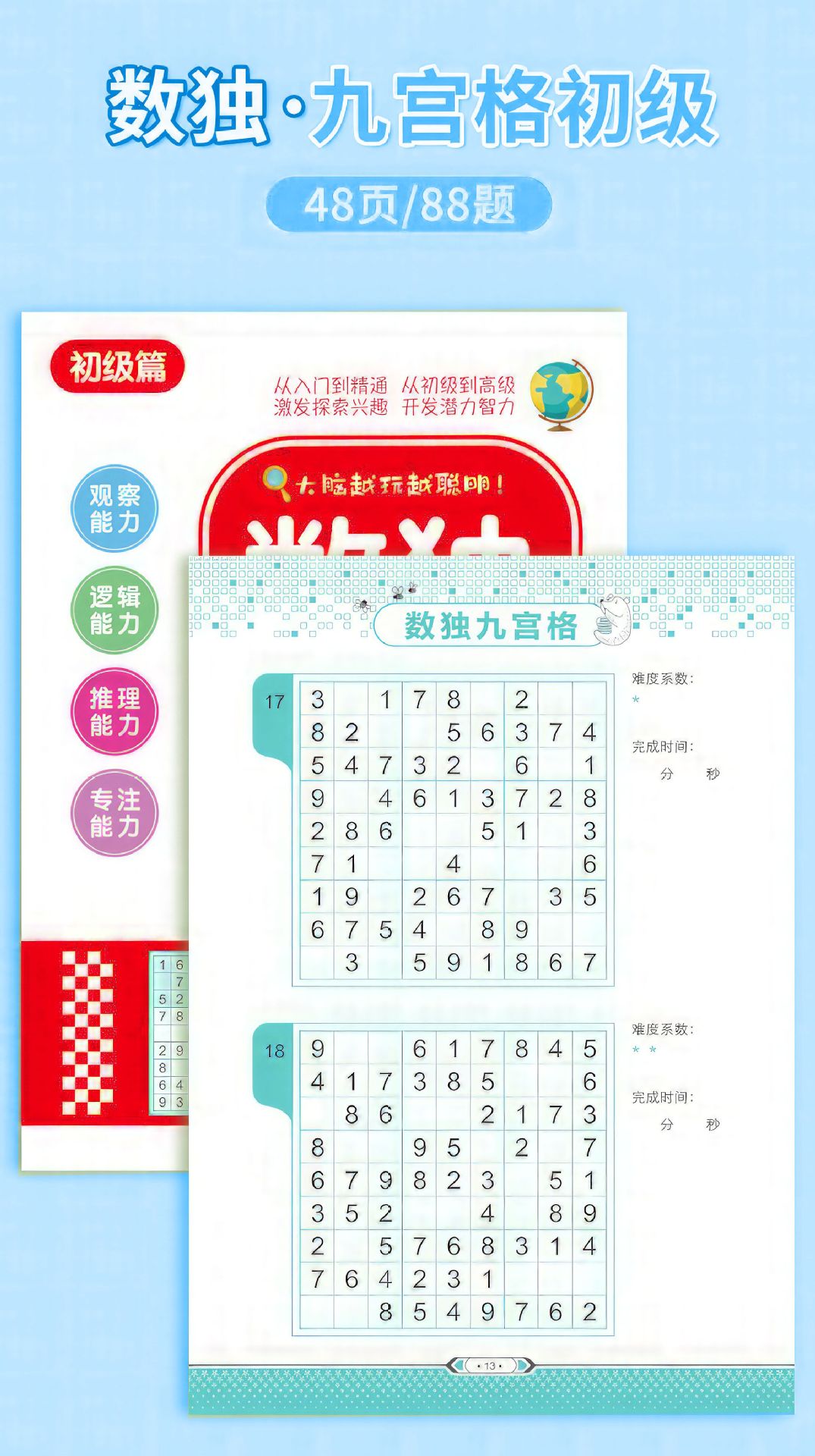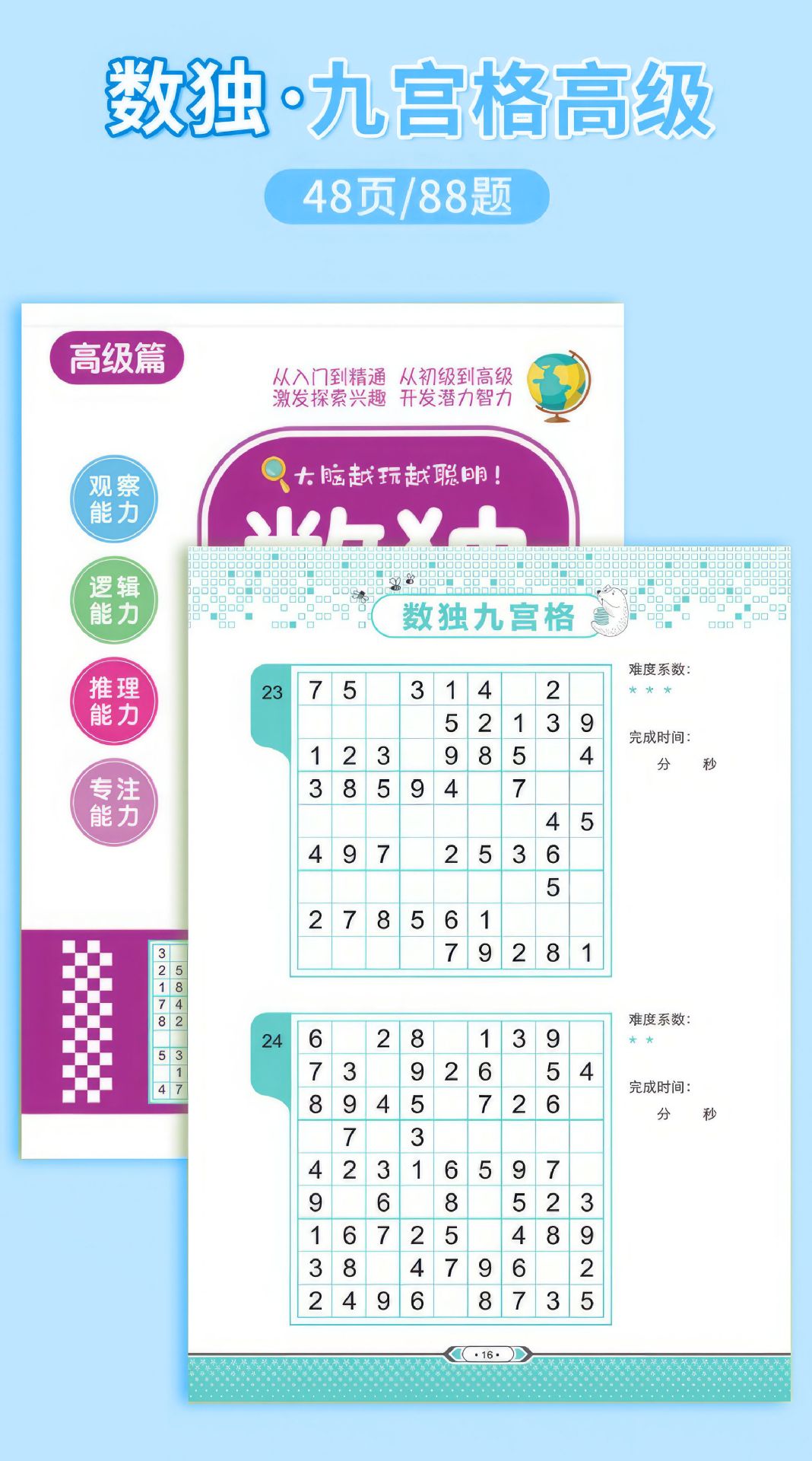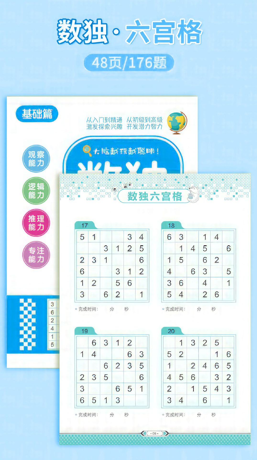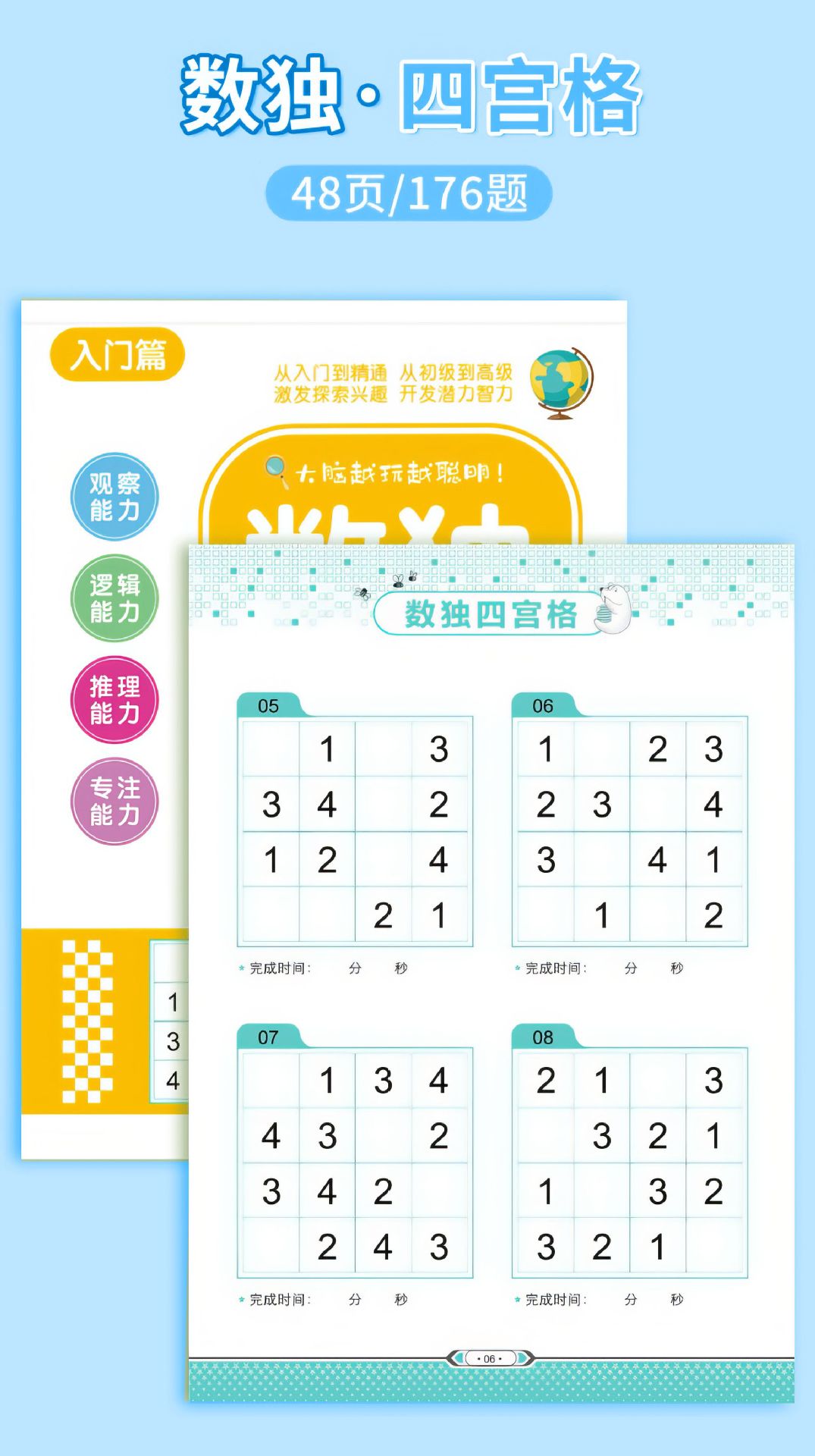 어린이 스도쿠 게임북 4 식스 나인 궁전 스도쿠 북 초등학교 학생 집중 훈련 교육 장난감 책