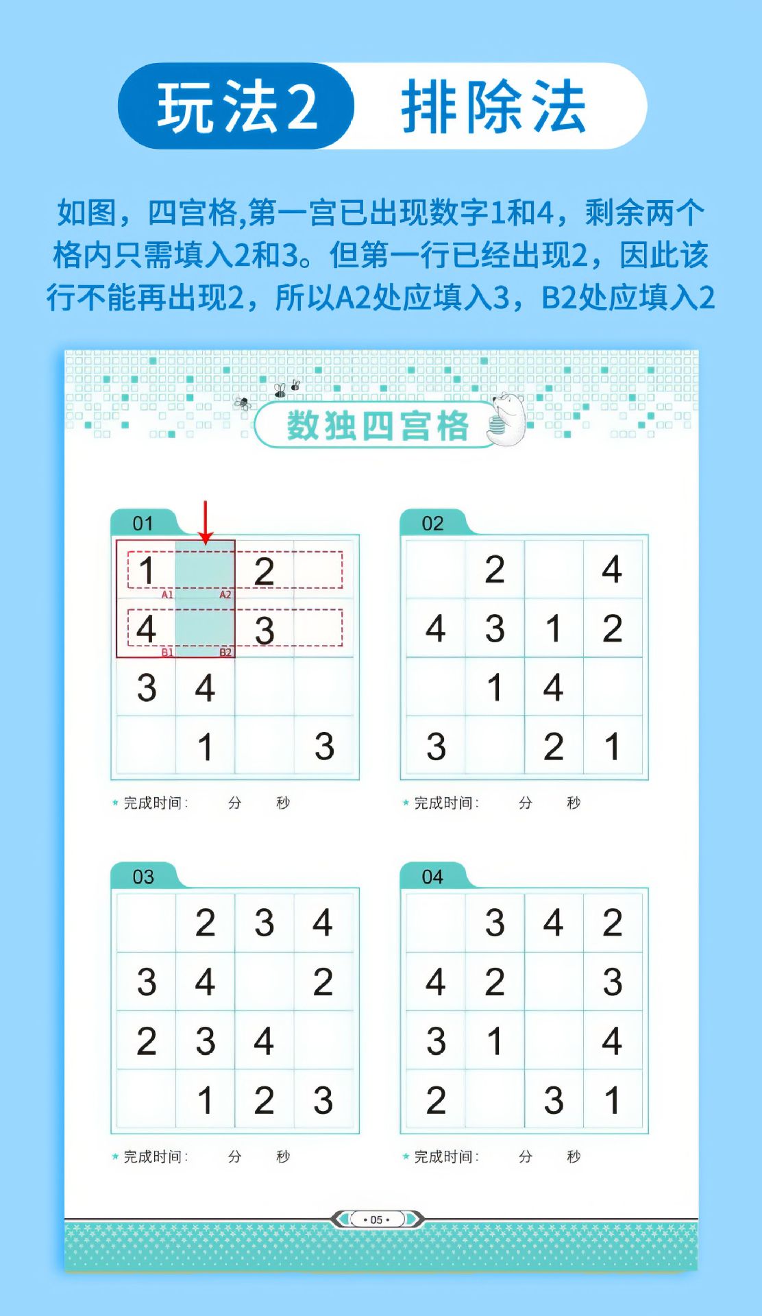 어린이 스도쿠 게임북 4 식스 나인 궁전 스도쿠 북 초등학교 학생 집중 훈련 교육 장난감 책스토어 가기