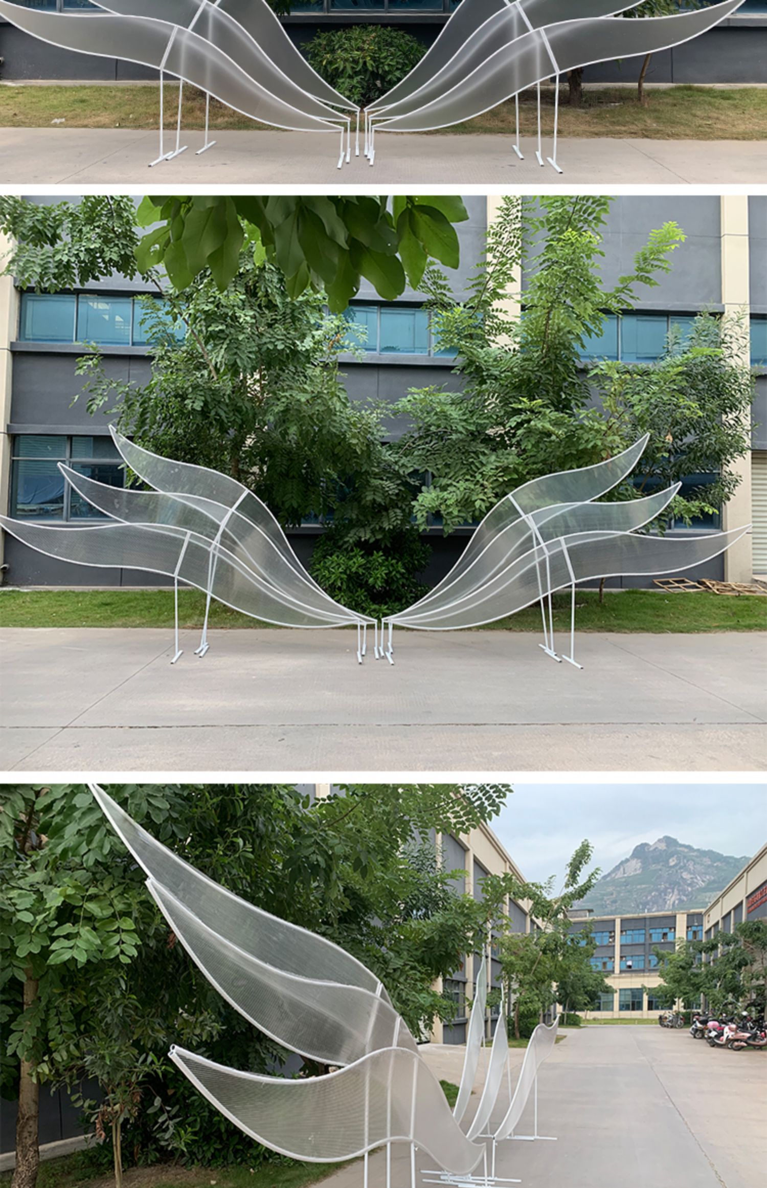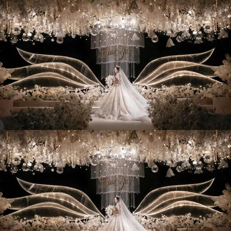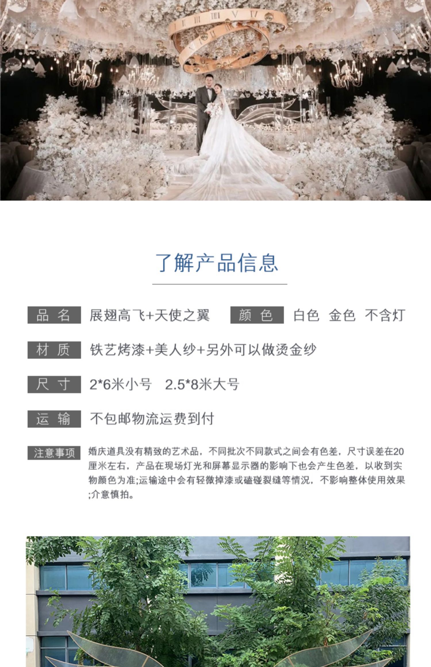 新款婚礼铁艺发光背景阳光板舞台摆件迎宾区天使之翼屏风婚庆道具