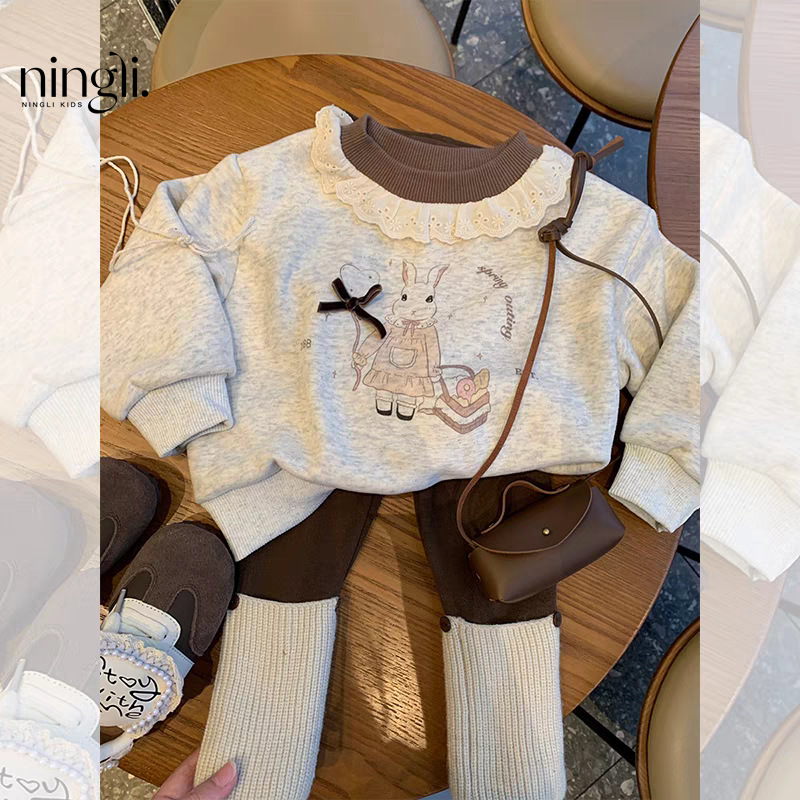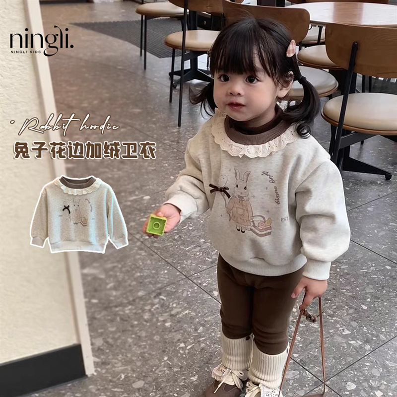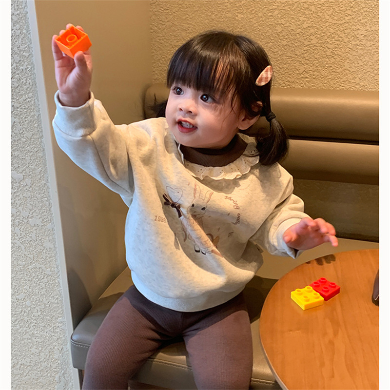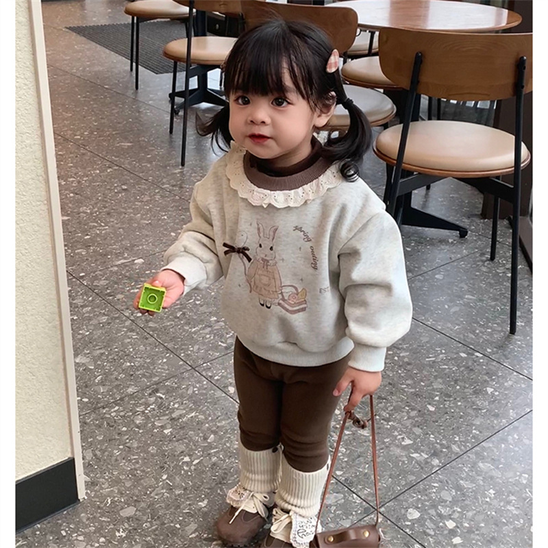 라임 소녀의 세트 기모 땀 달콤한 귀여운 가을과 겨울 새로운 가을과 겨울 아기 소녀의 원피스 벨벳 투피스 세트스토어 가기