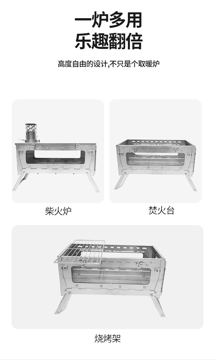 WT-Star-plus 스테인레스 스틸 다기능 캠핑 휴대용 경량 난방 접이식 나무 난로 시각적 스토브