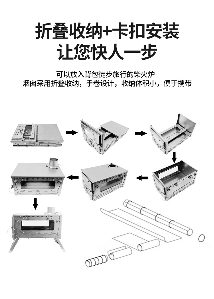 WT-Star-plus 스테인레스 스틸 다기능 캠핑 휴대용 경량 난방 접이식 나무 난로 시각적 스토브스토어 가기