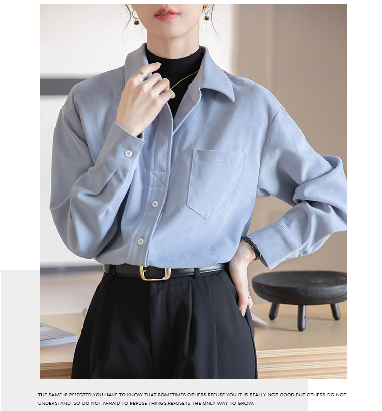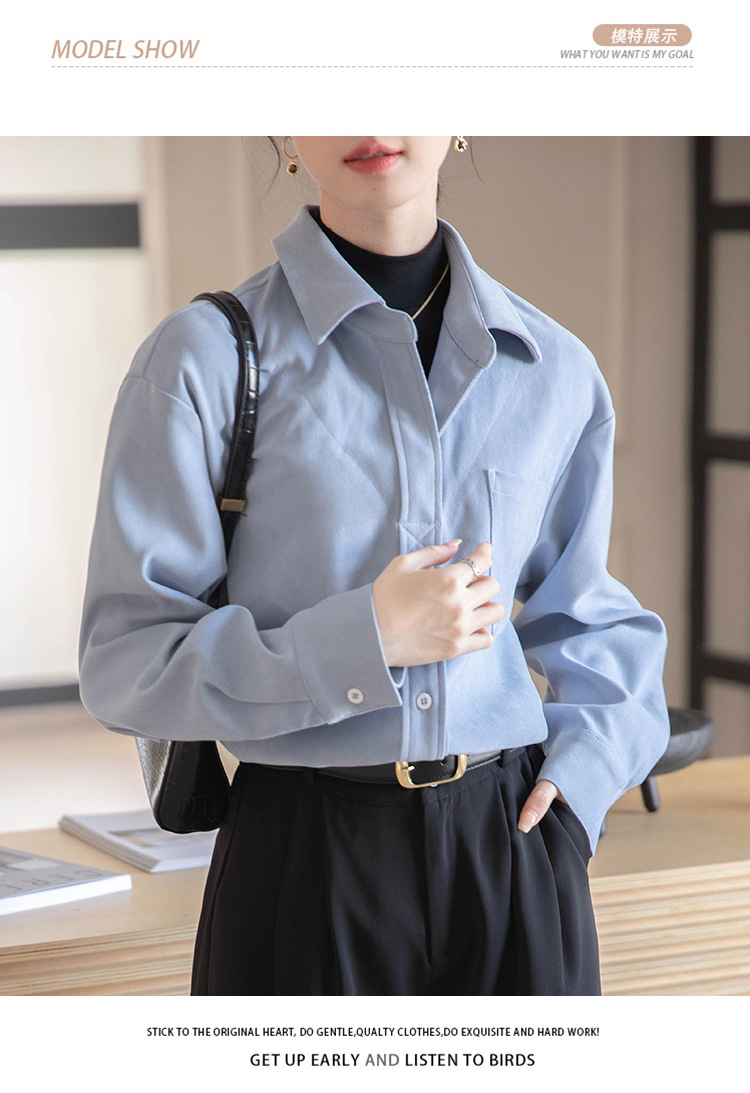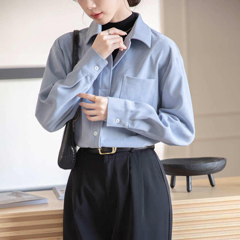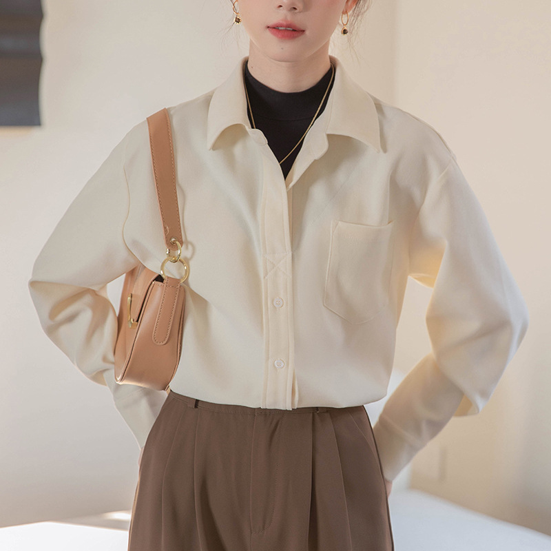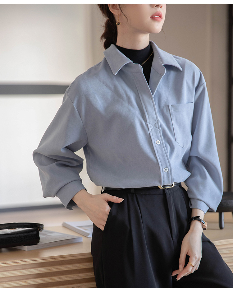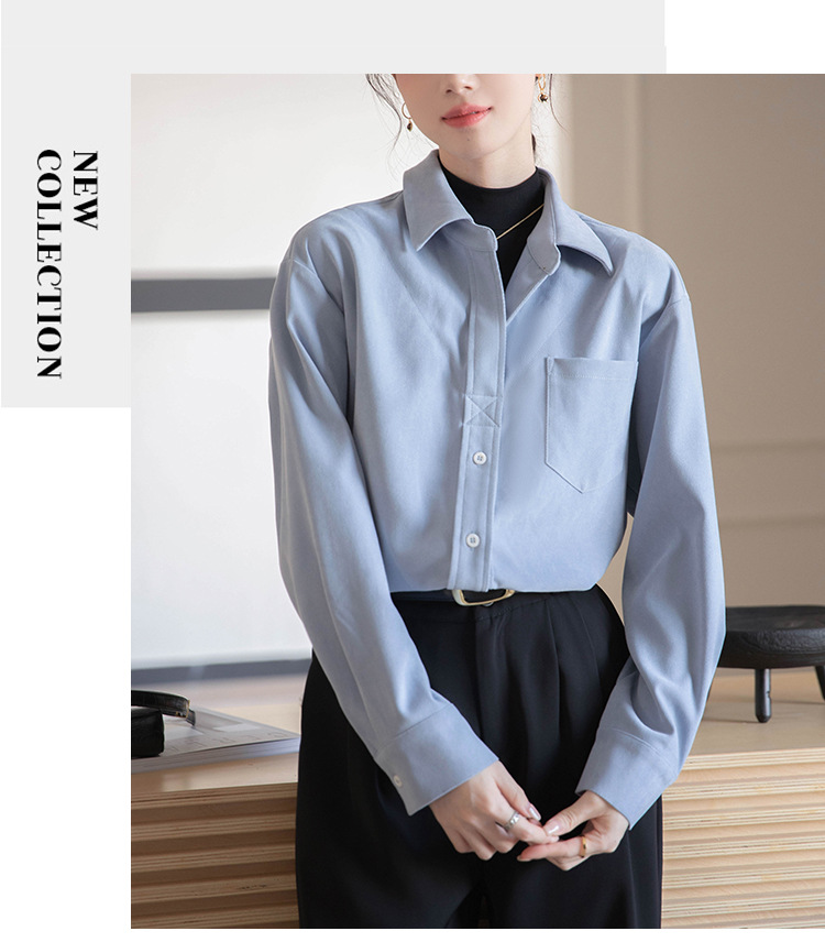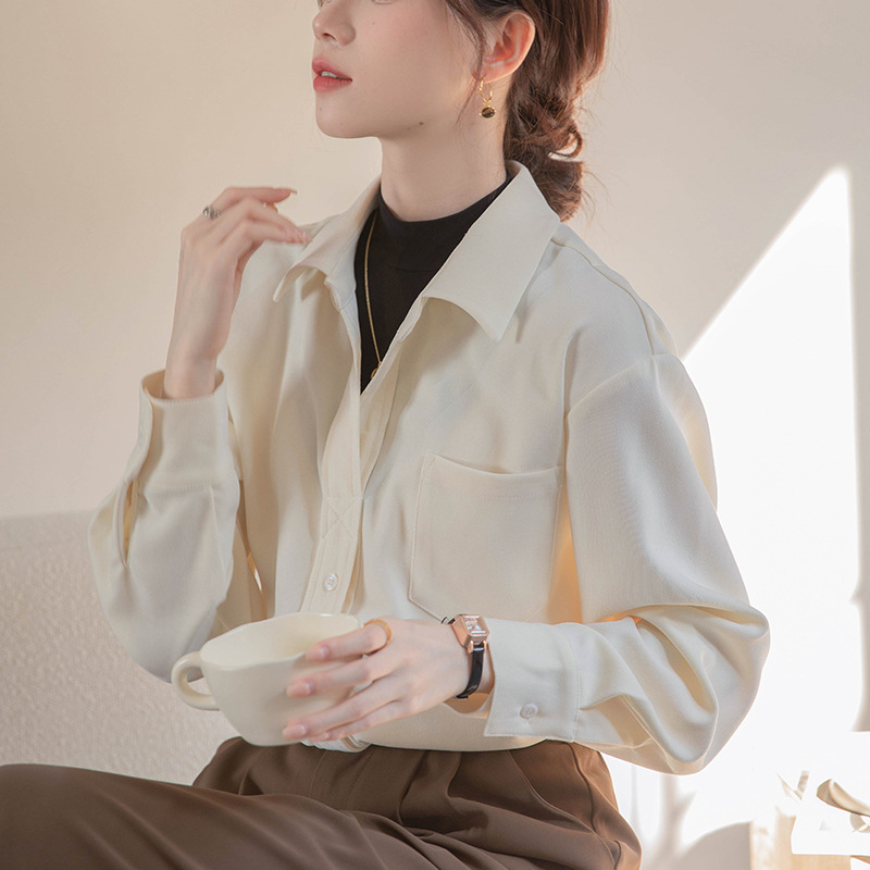 리얼 샷 가짜 2 피스 셔츠 여성의 가을 2024 새로운 디자인 센스 슬리밍 단색 간단한 긴팔 셔츠스토어 가기