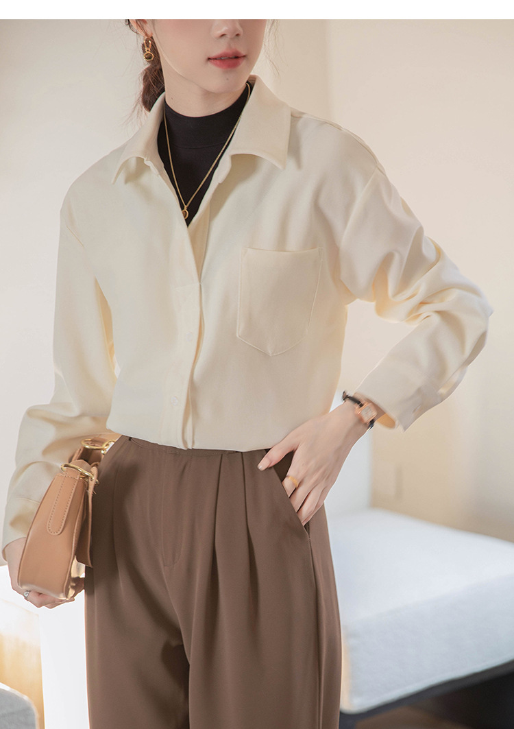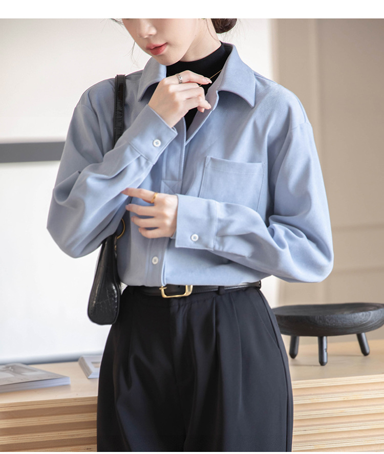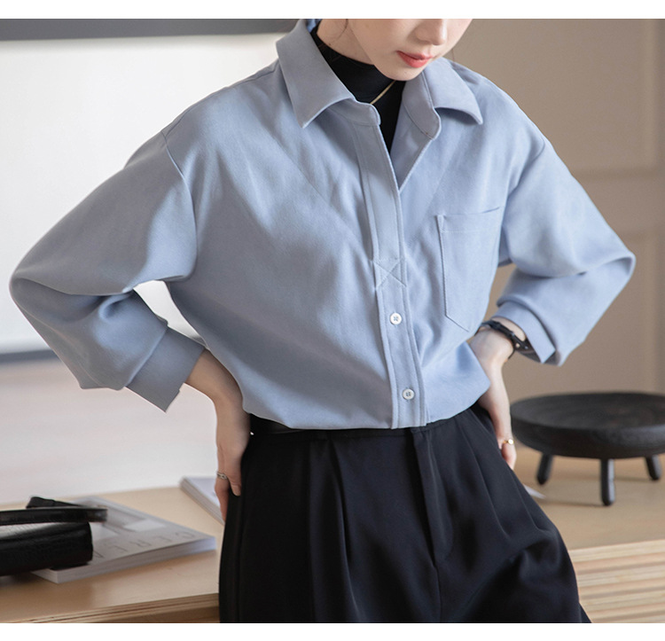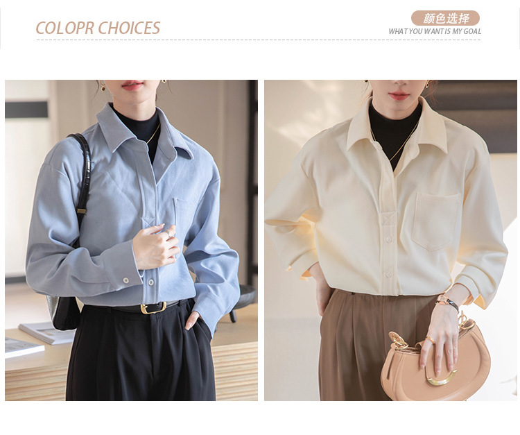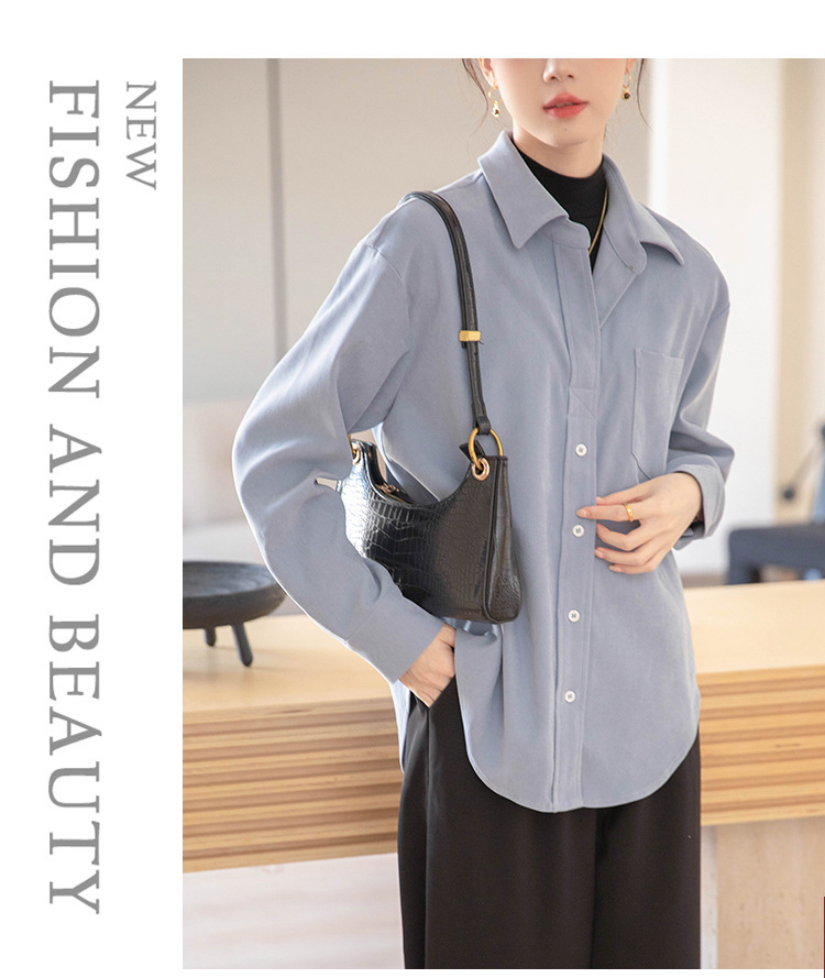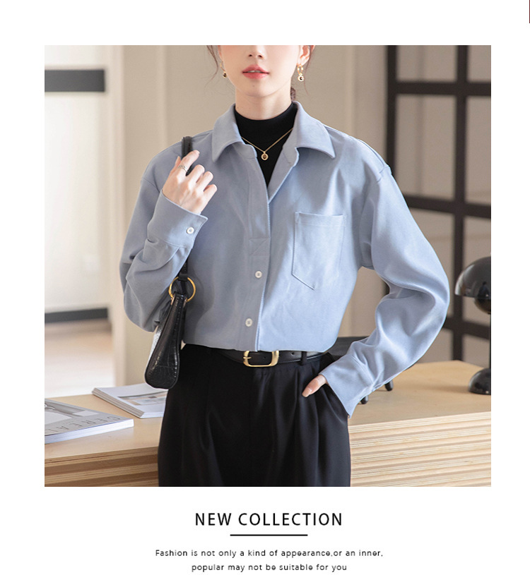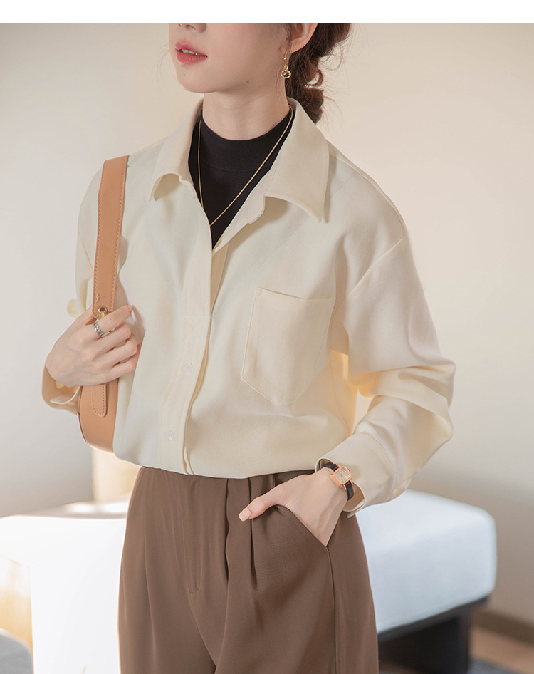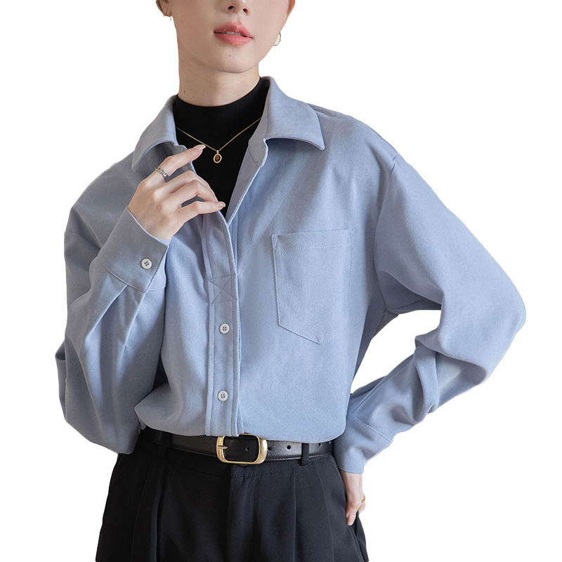 리얼 샷 가짜 2 피스 셔츠 여성의 가을 2024 새로운 디자인 센스 슬리밍 단색 간단한 긴팔 셔츠스토어 가기