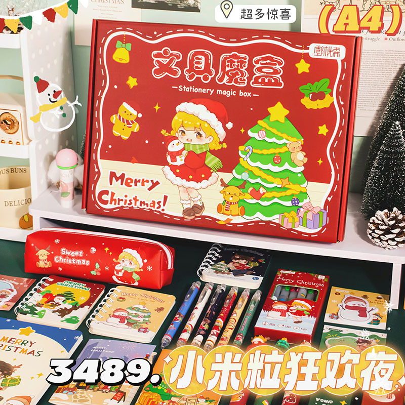 만화 A4 크리스마스 문구 매직 박스 학생 깜짝 문구 세트 선물 가방 어린이 크리스마스 선물 세트 도매스토어 가기