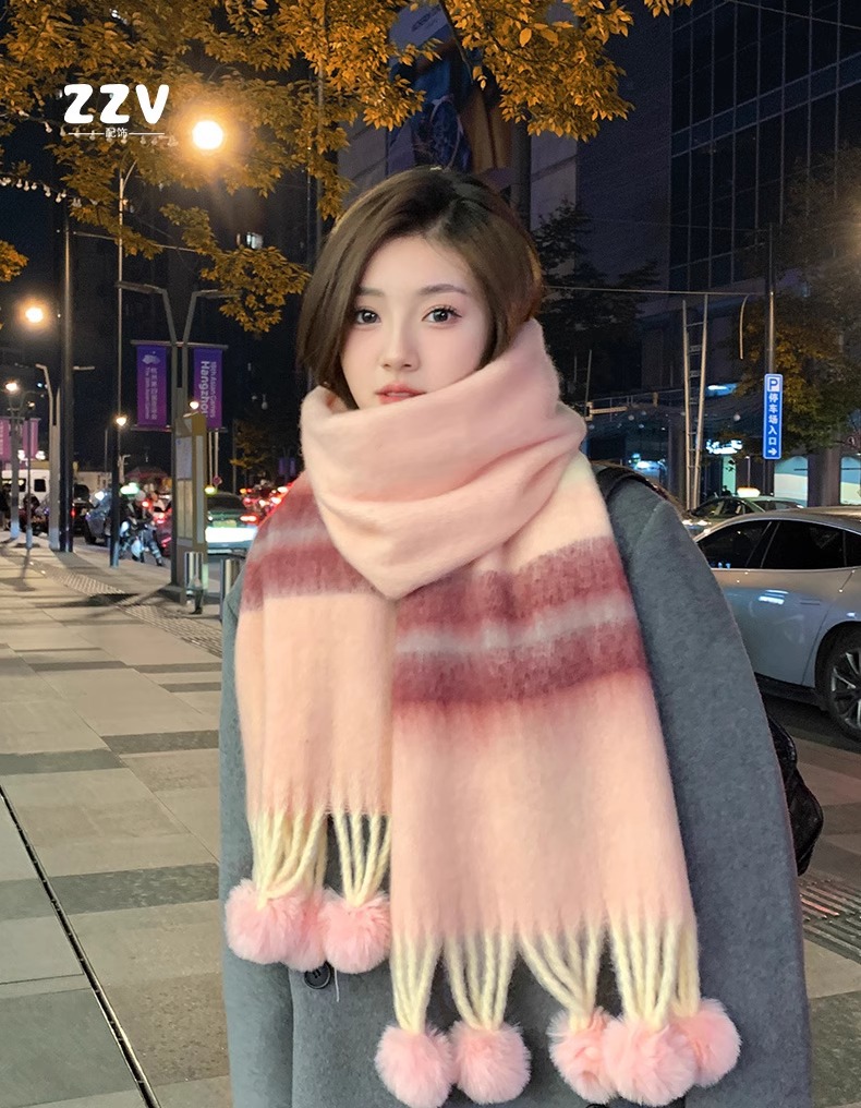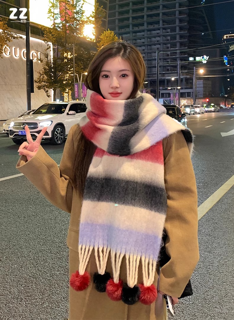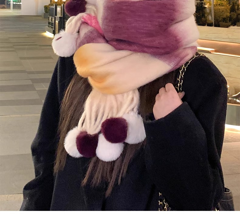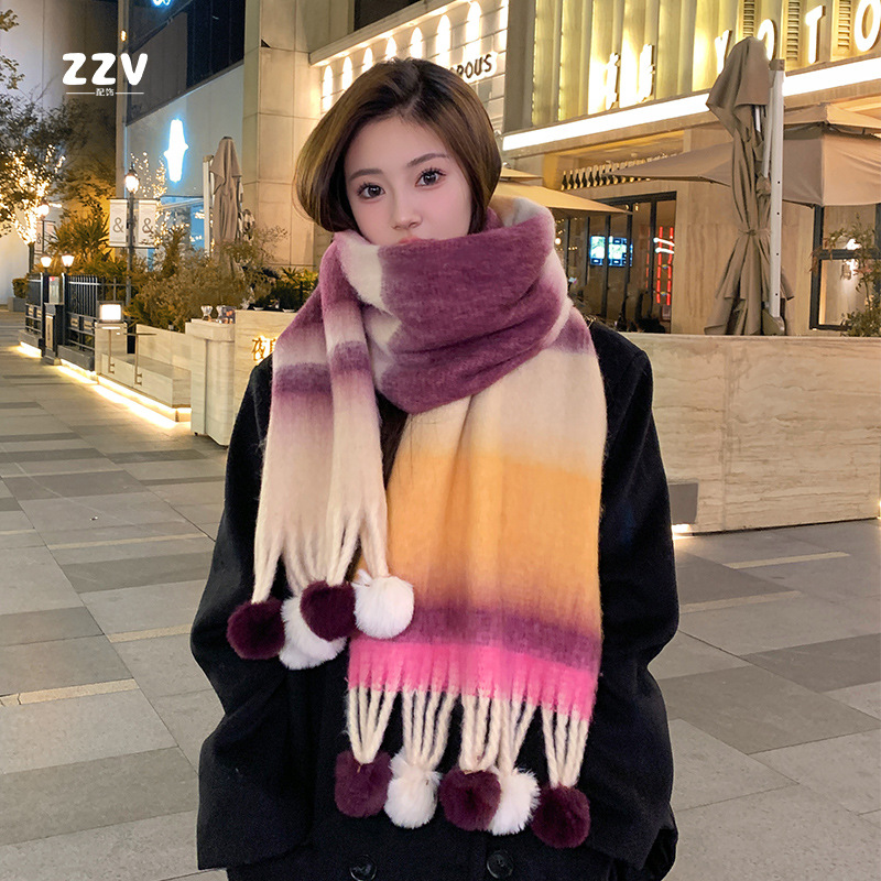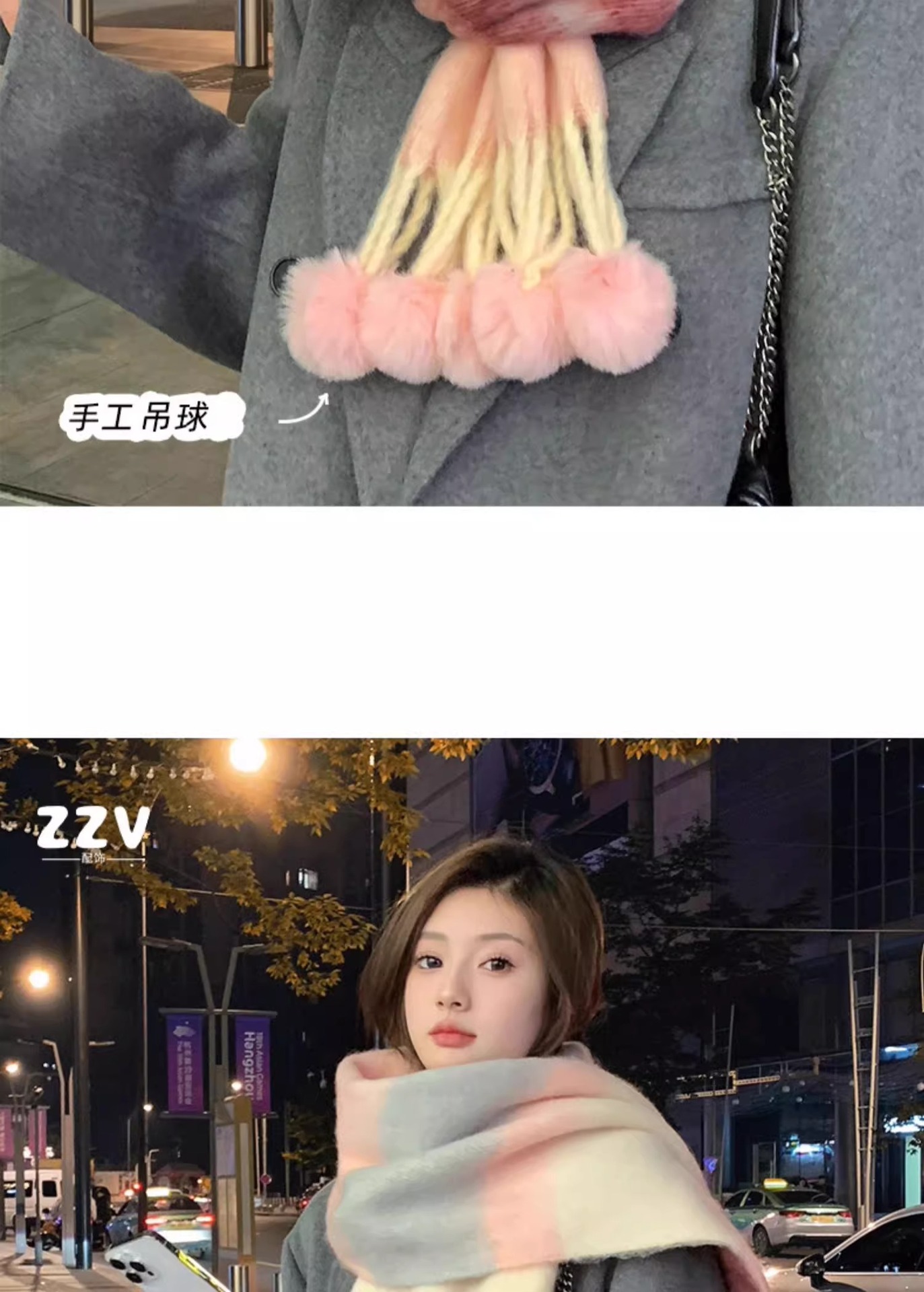 2024 새로운 높은 컬러 매칭 모헤어 스카프 여성의 가을과 겨울 두꺼운 따뜻한 올 매치 토끼 헤어 볼 넥 트렌디스토어 가기