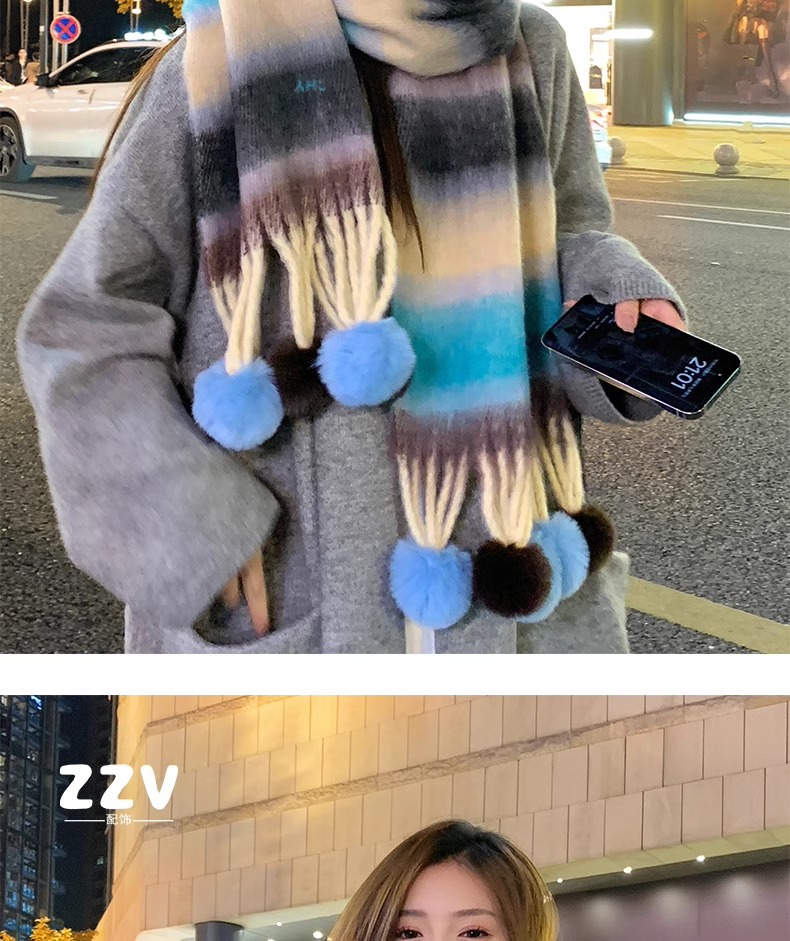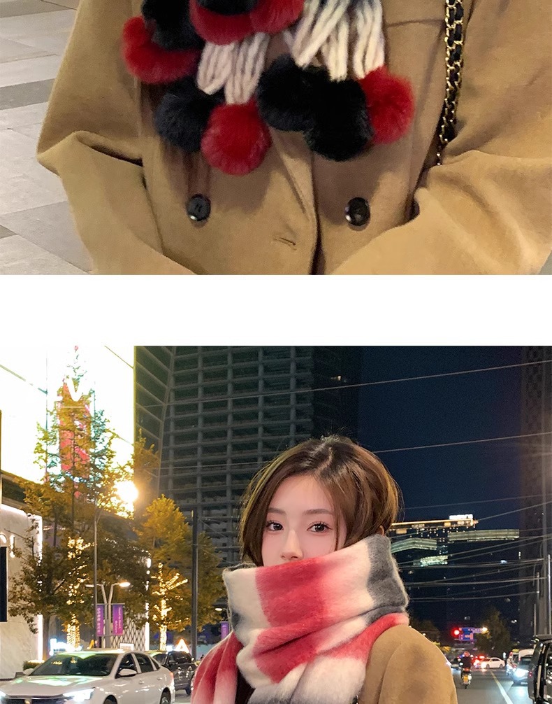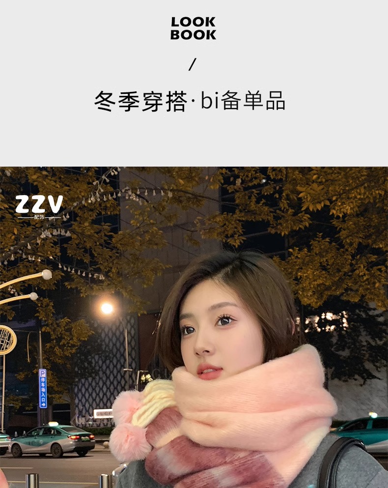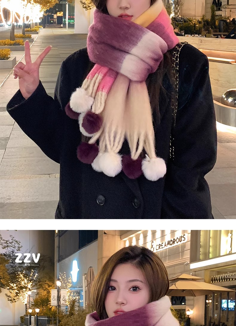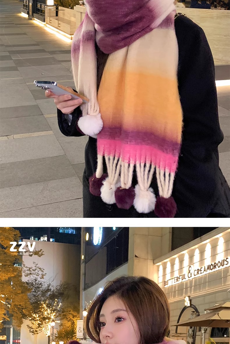 2024 새로운 높은 컬러 매칭 모헤어 스카프 여성의 가을과 겨울 두꺼운 따뜻한 올 매치 토끼 헤어 볼 넥 트렌디스토어 가기