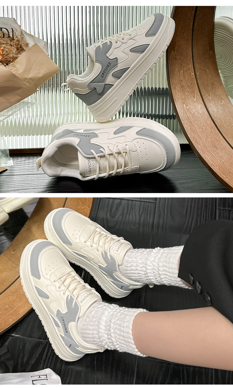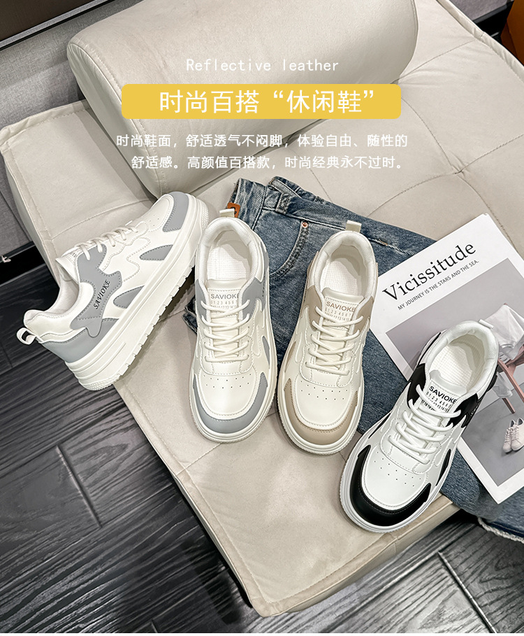 2024 봄과 가을 새로운 스포츠 캐주얼 화이트 슈즈 여성 Ins 한국식 두꺼운 가죽 올매치 싱글 레이어 슈즈 패셔너블 스니커즈