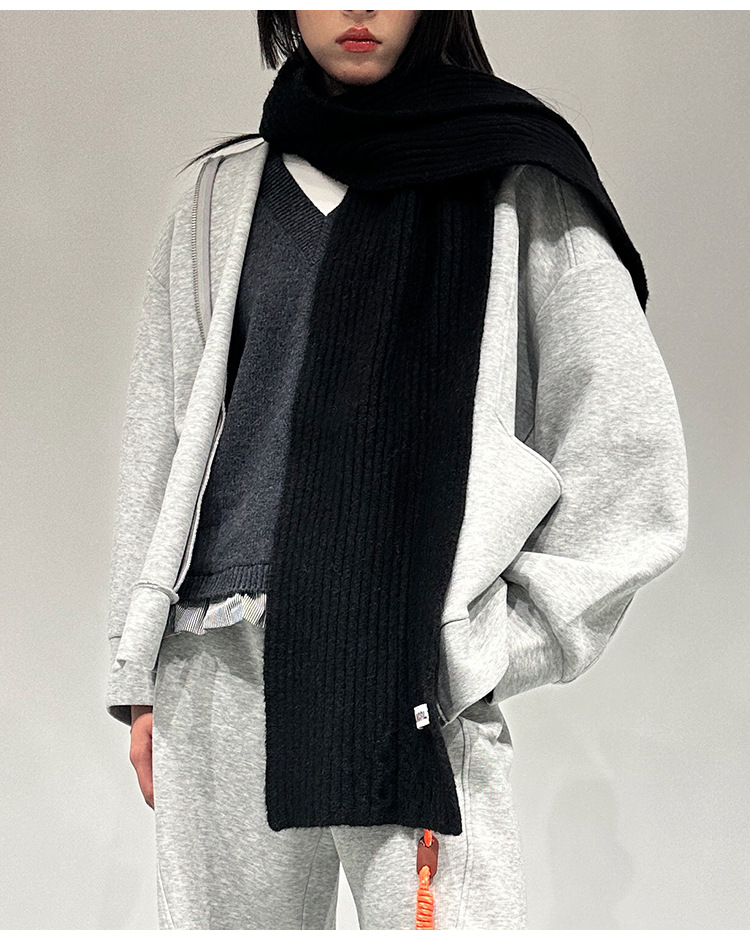 도매 2024 새로운 가을과 겨울 클래식 단색 높은 감각 따뜻한 니트 스카프 여성의 두꺼운 스카프 한국어 버전