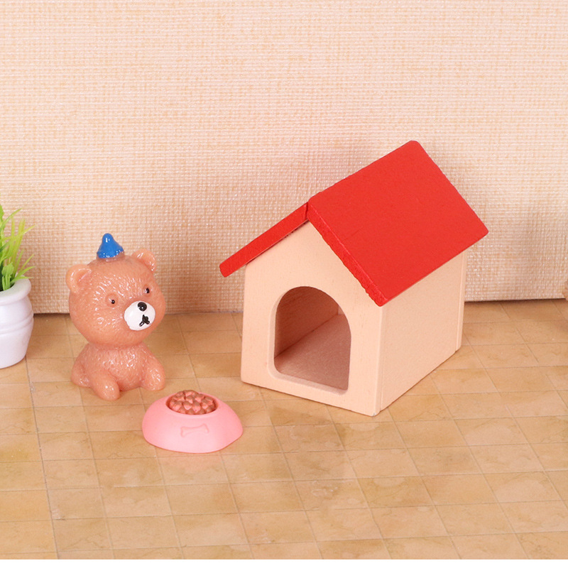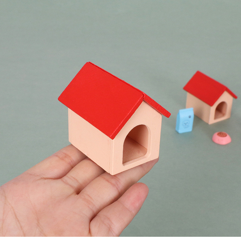 국경 인형 집 장식 액세서리 미니 시뮬레이션 강아지 애완 동물 오두막 창조적 인 모델 마이크로 풍경 나무 장식품스토어 가기