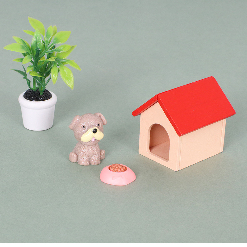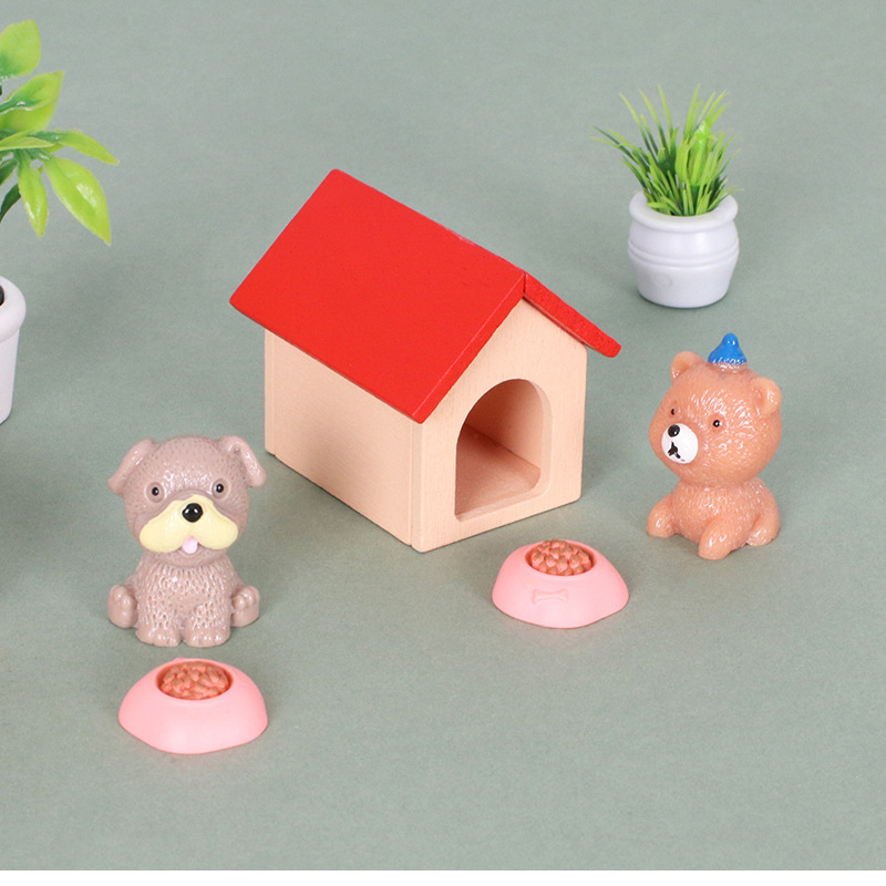 국경 인형 집 장식 액세서리 미니 시뮬레이션 강아지 애완 동물 오두막 창조적 인 모델 마이크로 풍경 나무 장식품