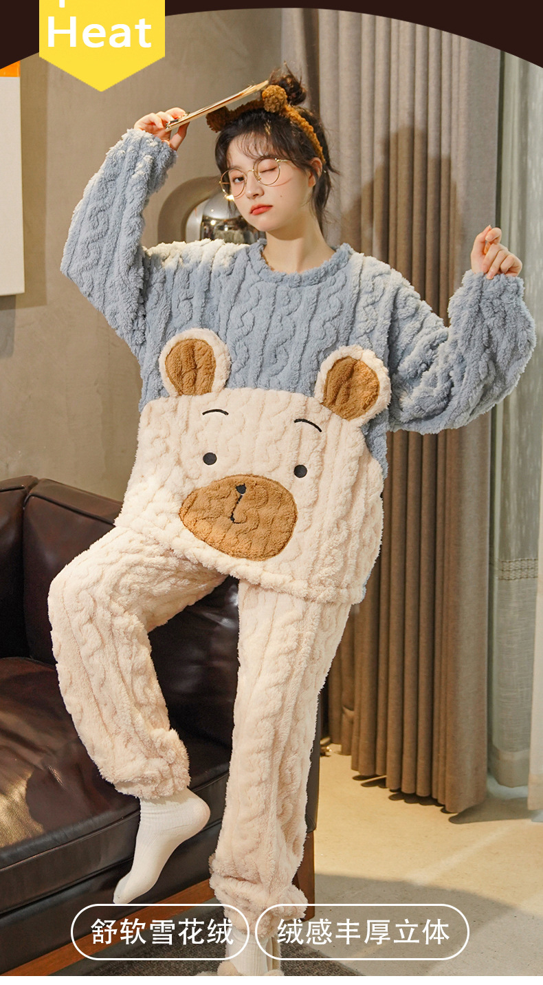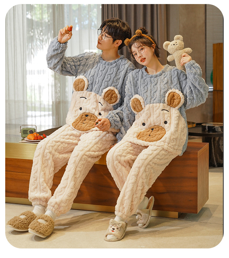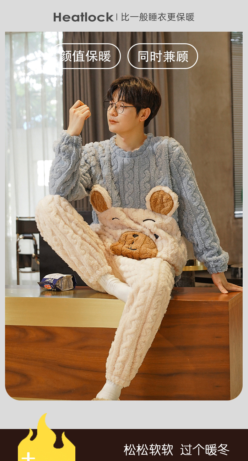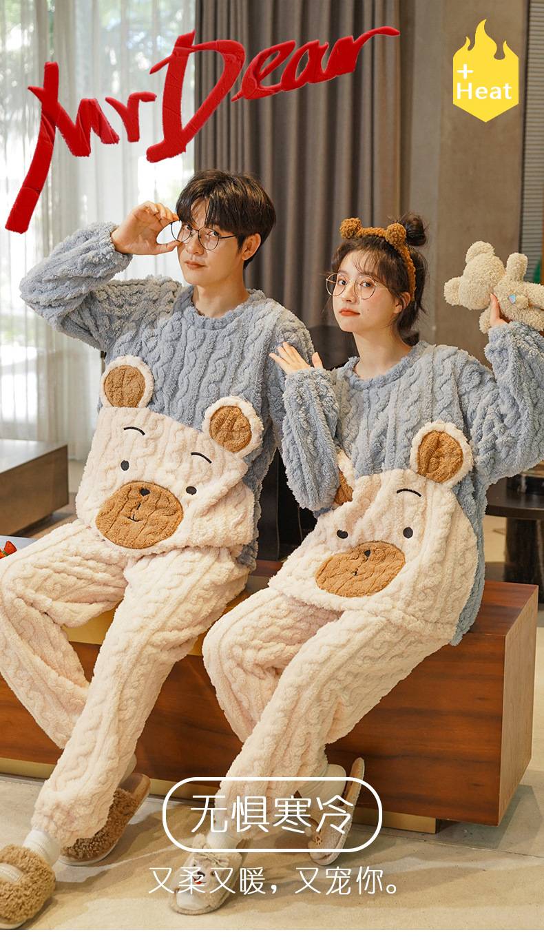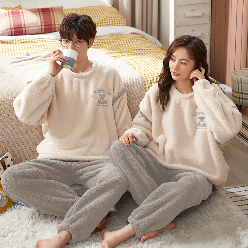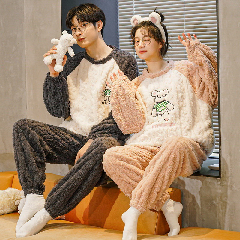커플 잠옷 여성의 겨울 산호 양털 기모 따뜻한 남성 캐주얼 세트 겉옷 홈 옷스토어 가기