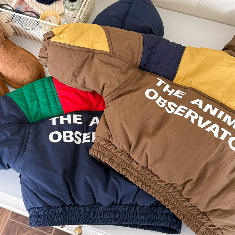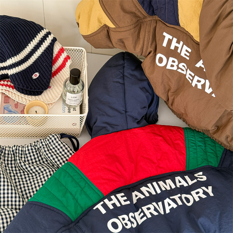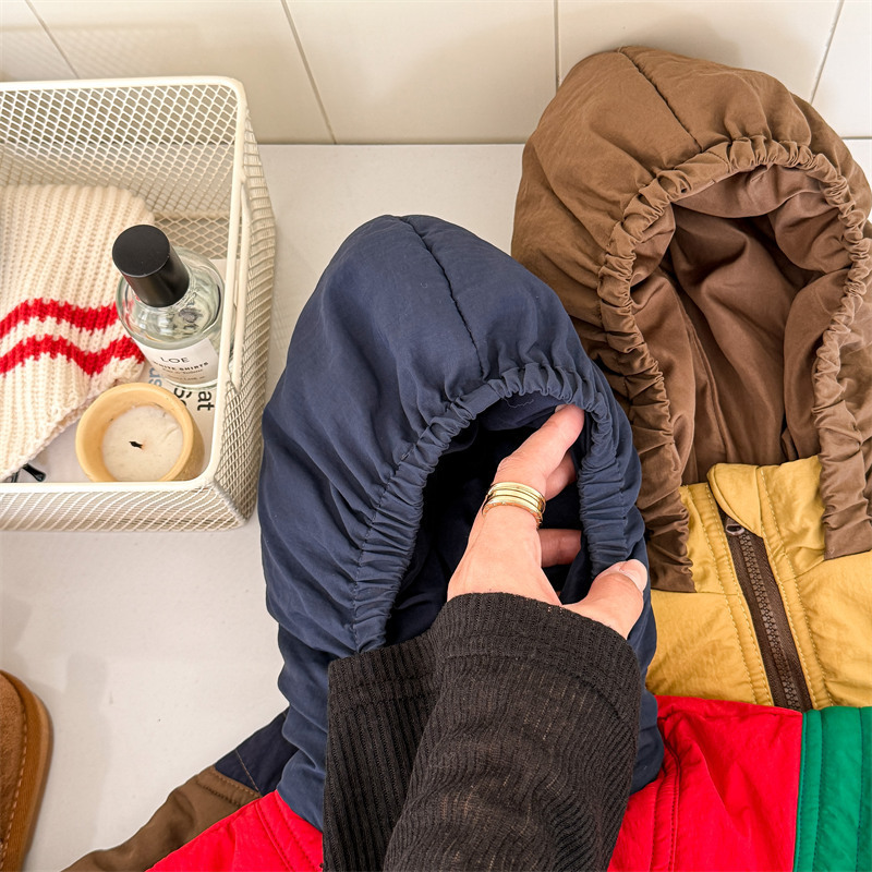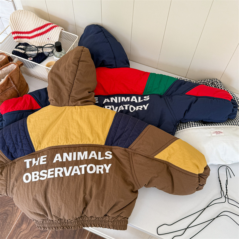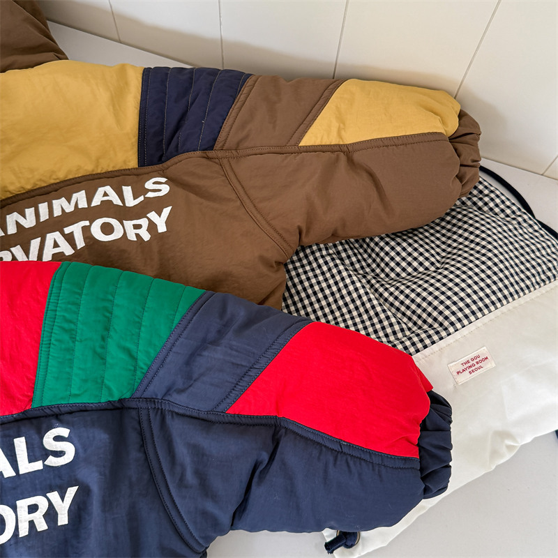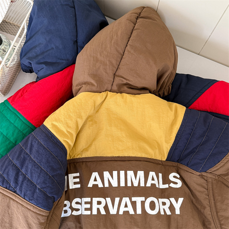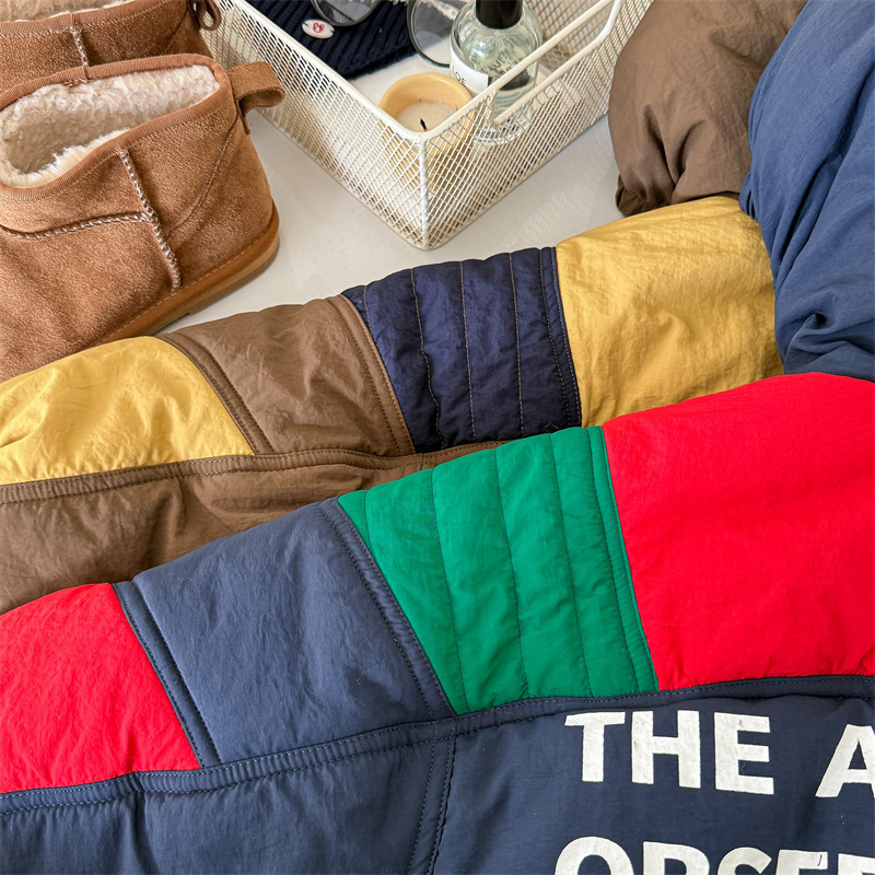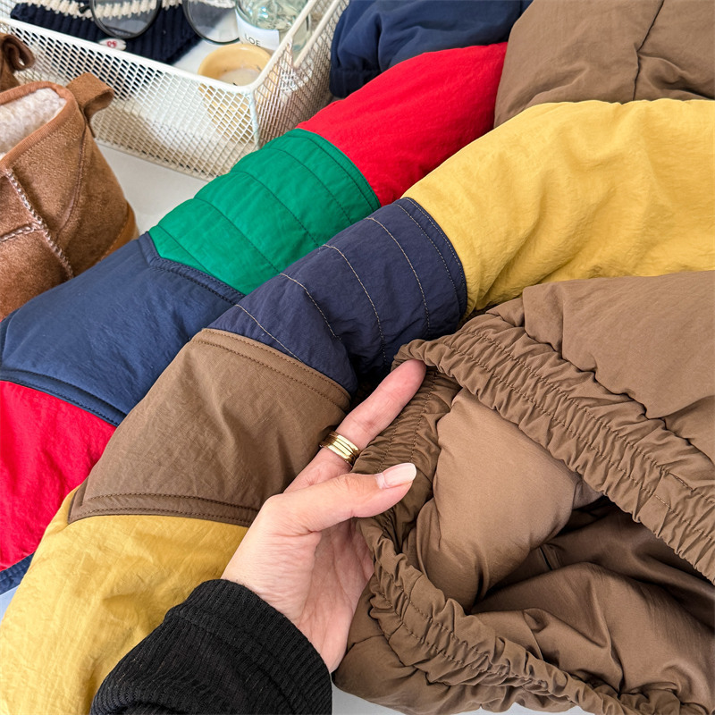 남학생과 여학생을위한 2024 년 겨울 어린이 다운 코튼 패딩 재킷 한국 컬러 매칭 후드면 패딩 따뜻한 재킷스토어 가기