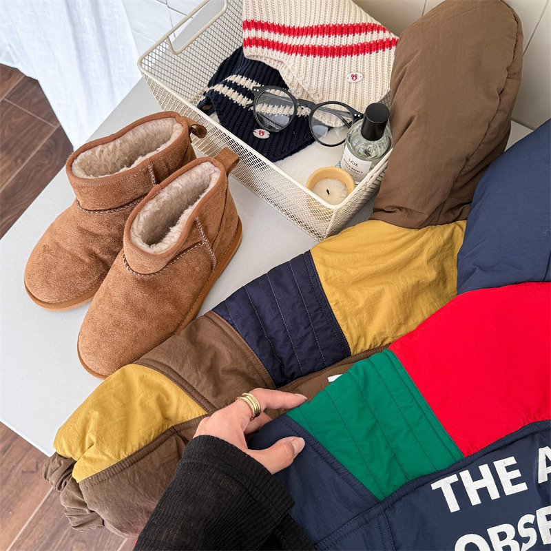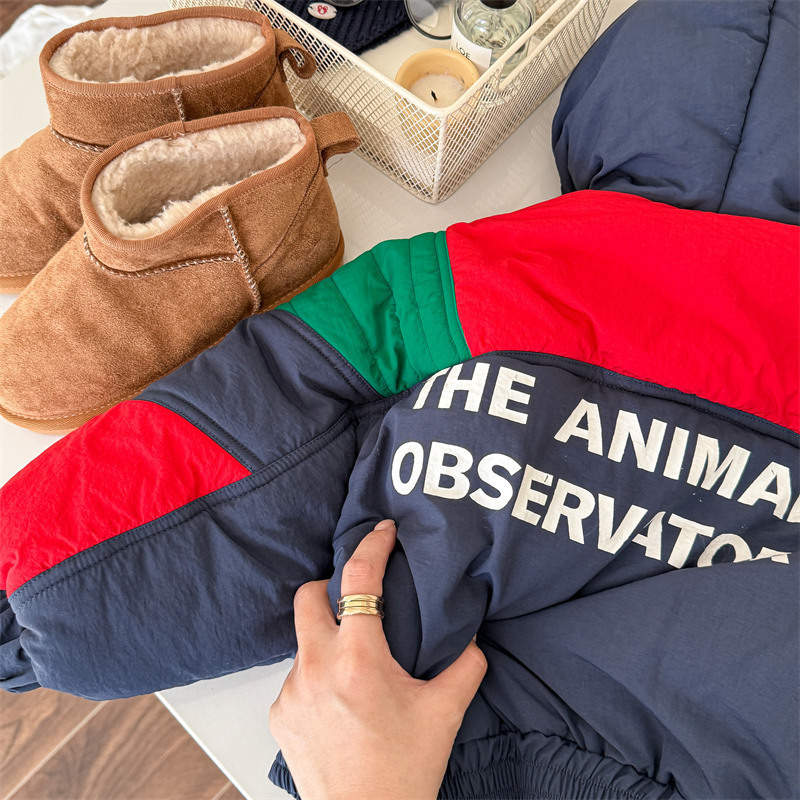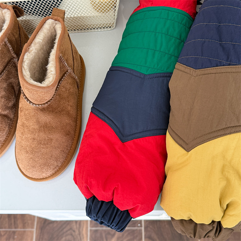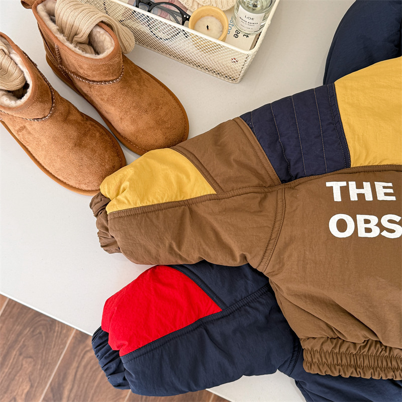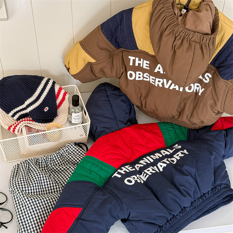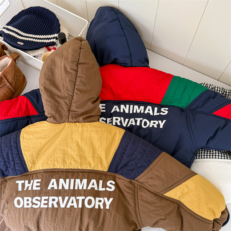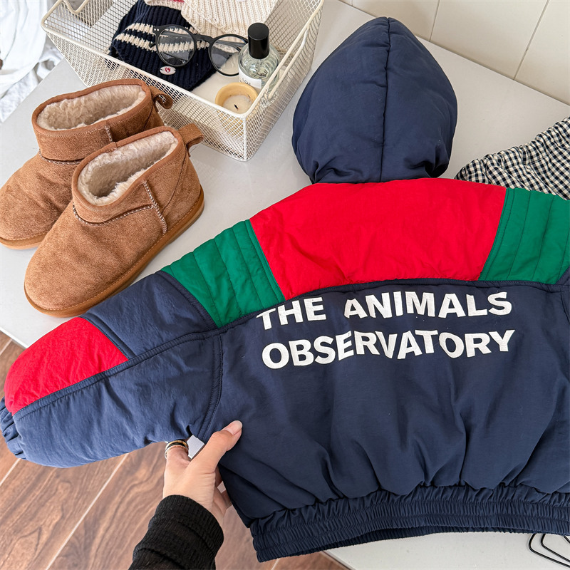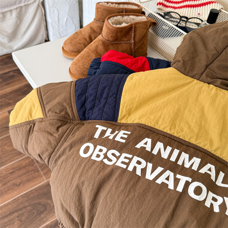 남학생과 여학생을위한 2024 년 겨울 어린이 다운 코튼 패딩 재킷 한국 컬러 매칭 후드면 패딩 따뜻한 재킷스토어 가기