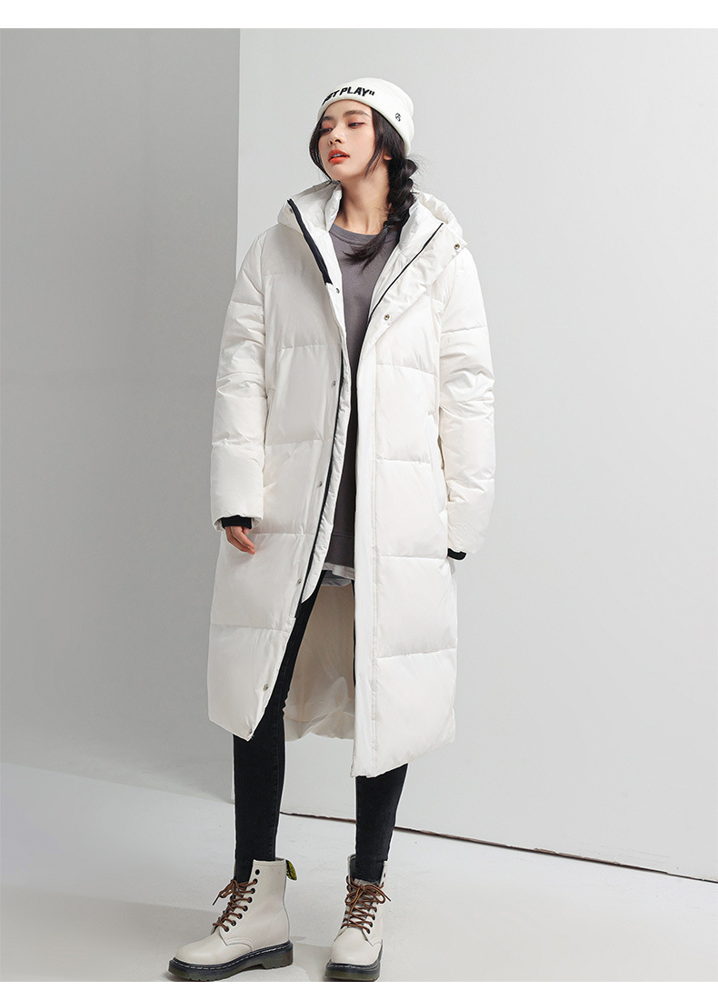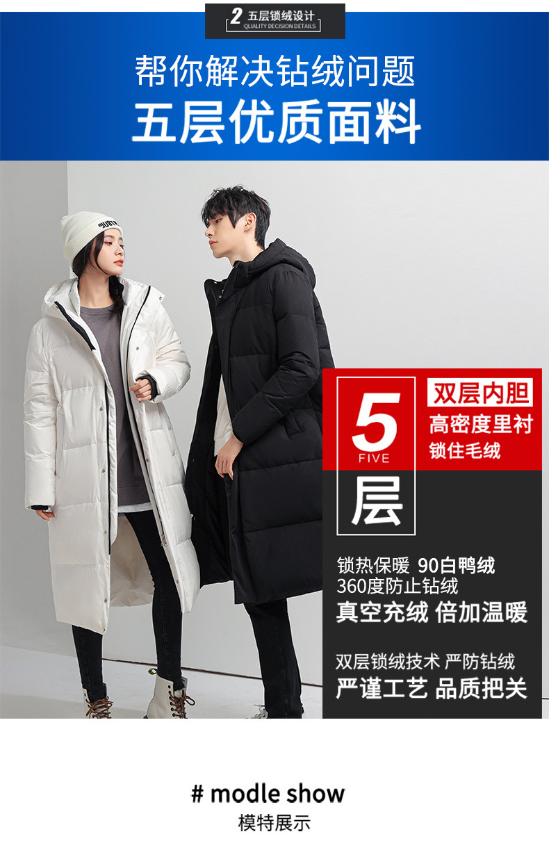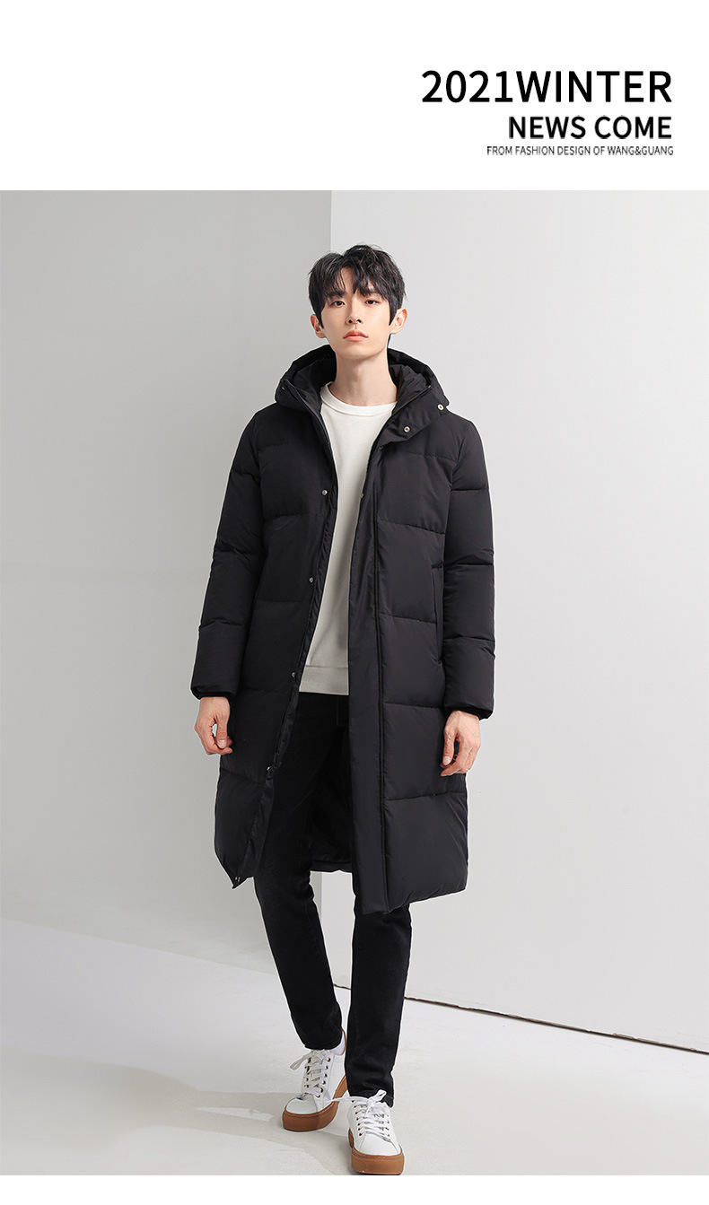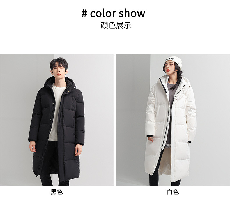 국경 간 겨울 플러스 사이즈 중간 길이 다운 재킷 남자 흰 오리 겨울 옷 느슨한 남자와 여자의 후드 따뜻한 재킷