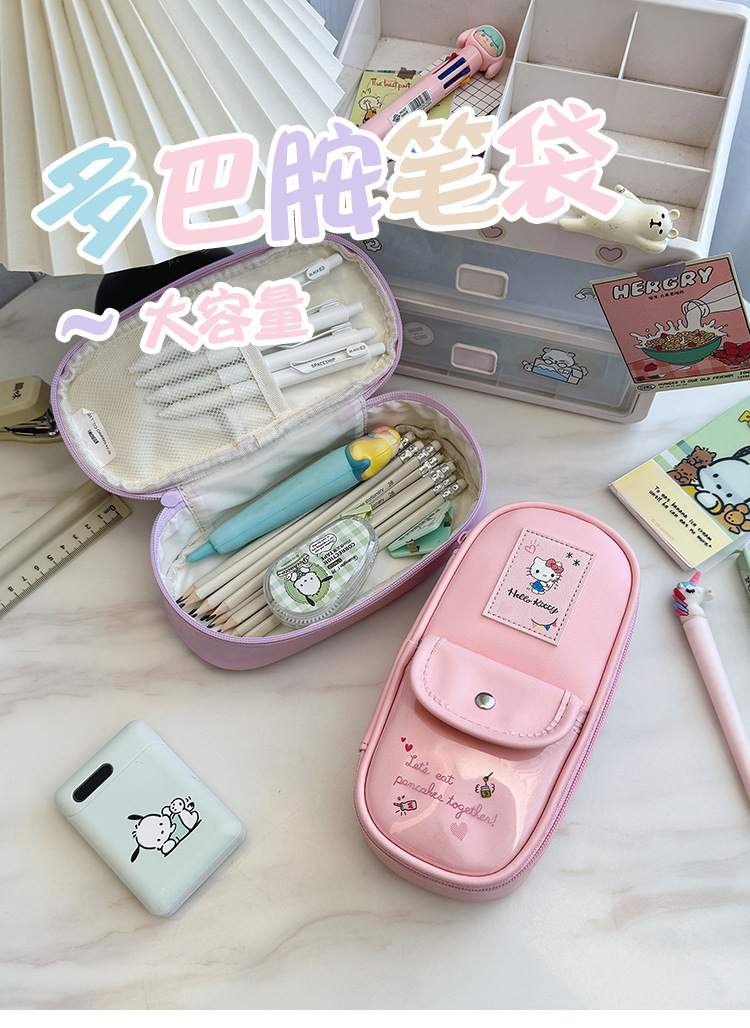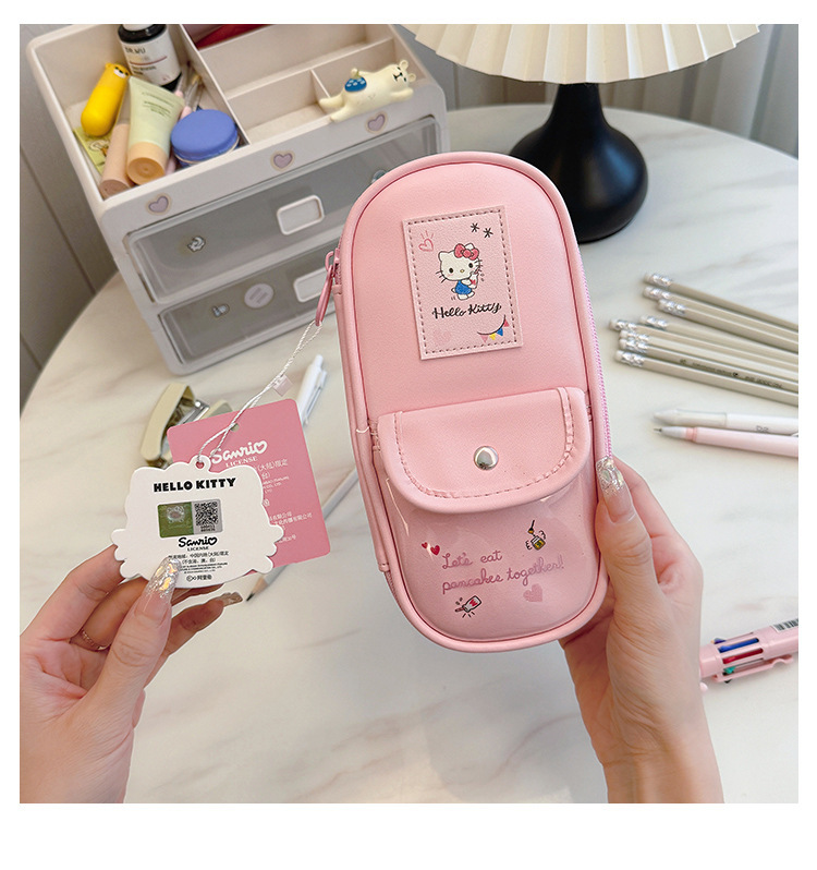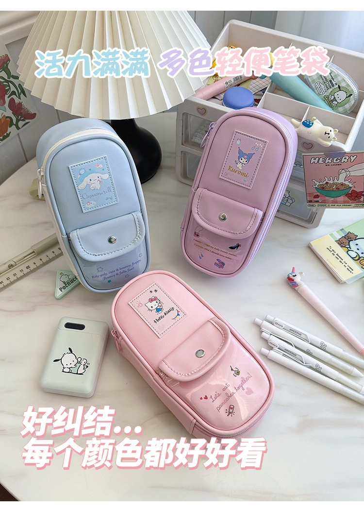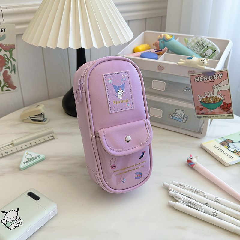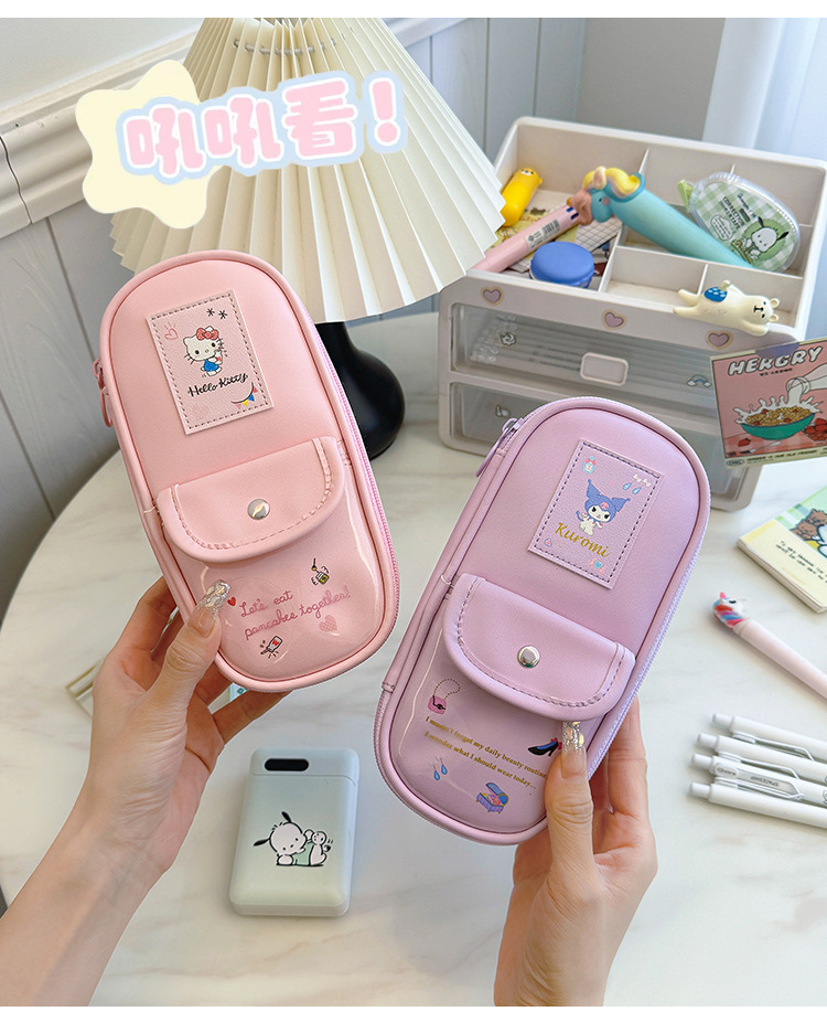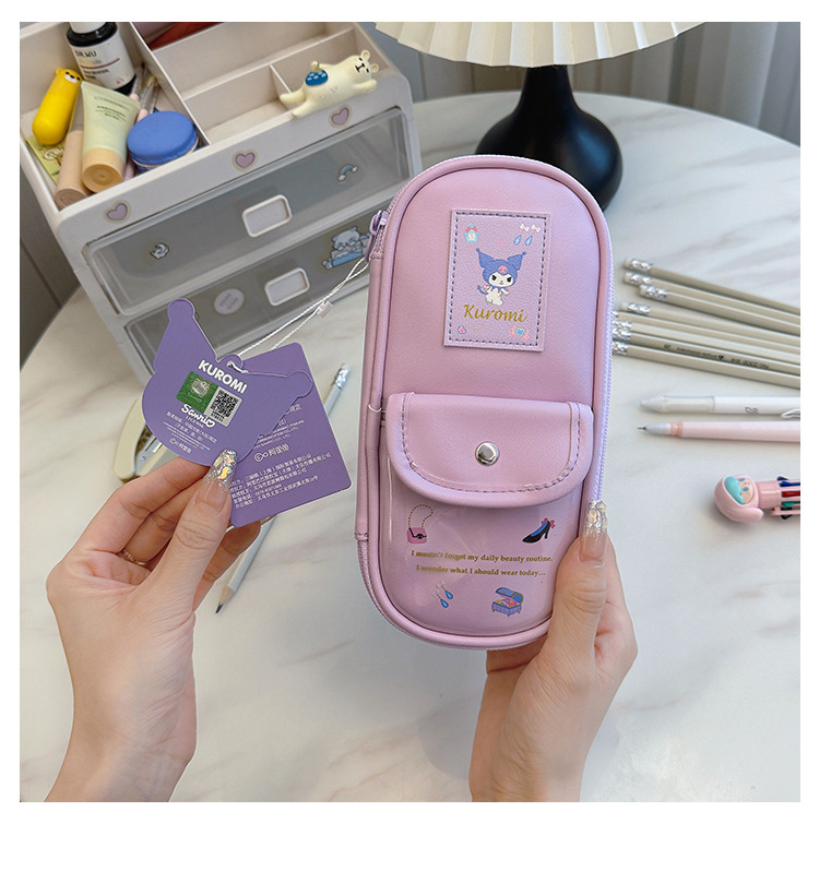 대용량 PU 가죽 더러운 저항하는 연필 케이스 귀여운 만화 KT Kulomi 휴대용 문구 가방 인 Sanrio Genuine