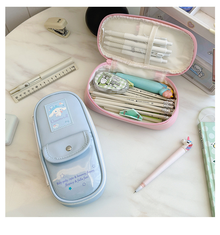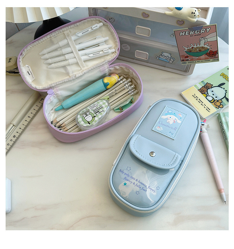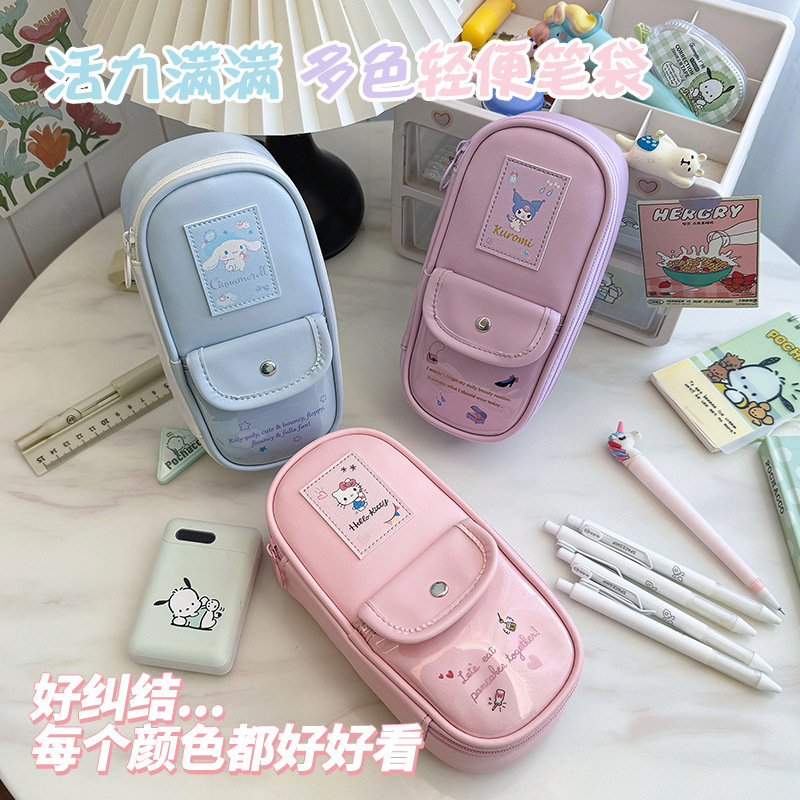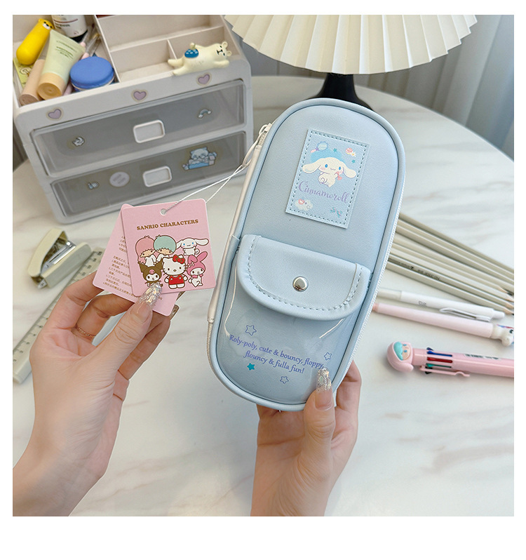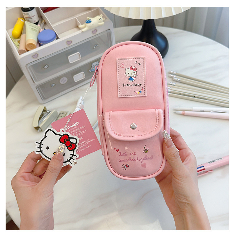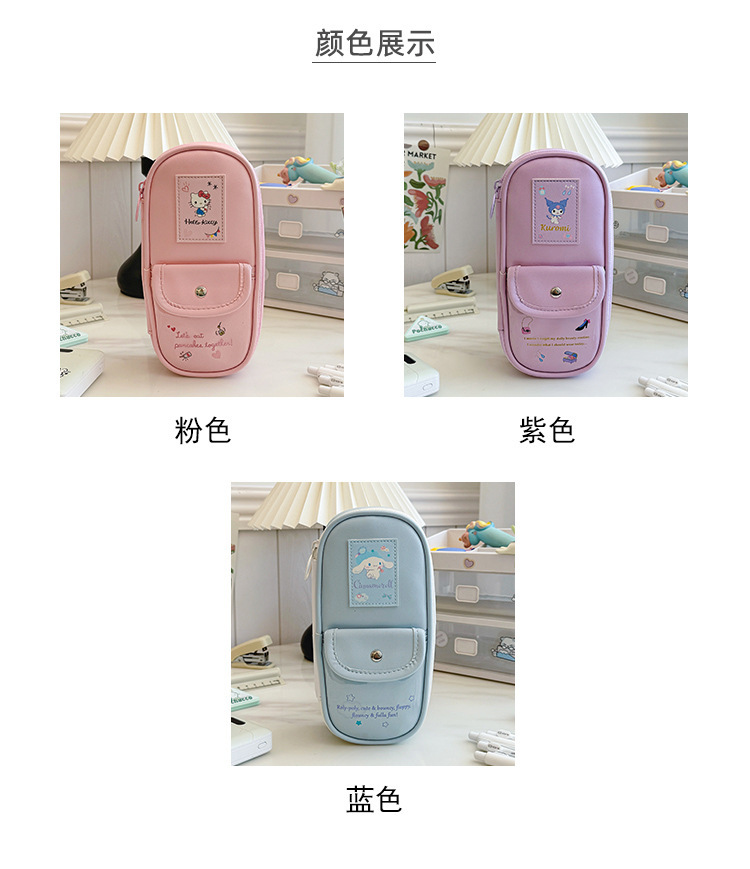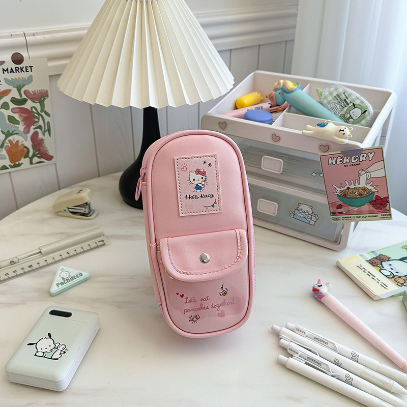 대용량 PU 가죽 더러운 저항하는 연필 케이스 귀여운 만화 KT Kulomi 휴대용 문구 가방 인 Sanrio Genuine