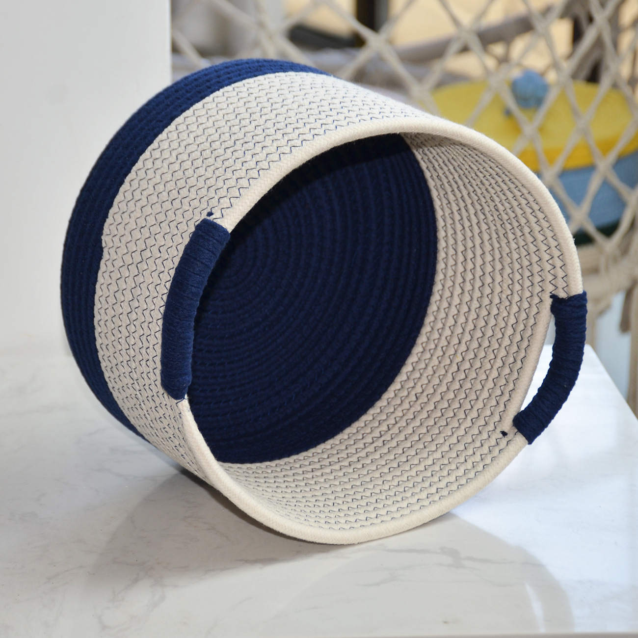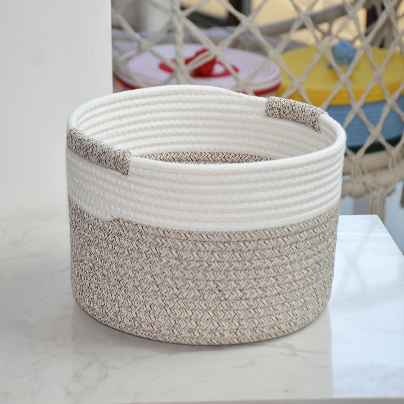 새로운 현대 간단한 스타일 저장 바구니 목화 밧줄 저장 바구니 장난감 간식 가정 용품 보관 바구니 더러운 옷 바구니스토어 가기