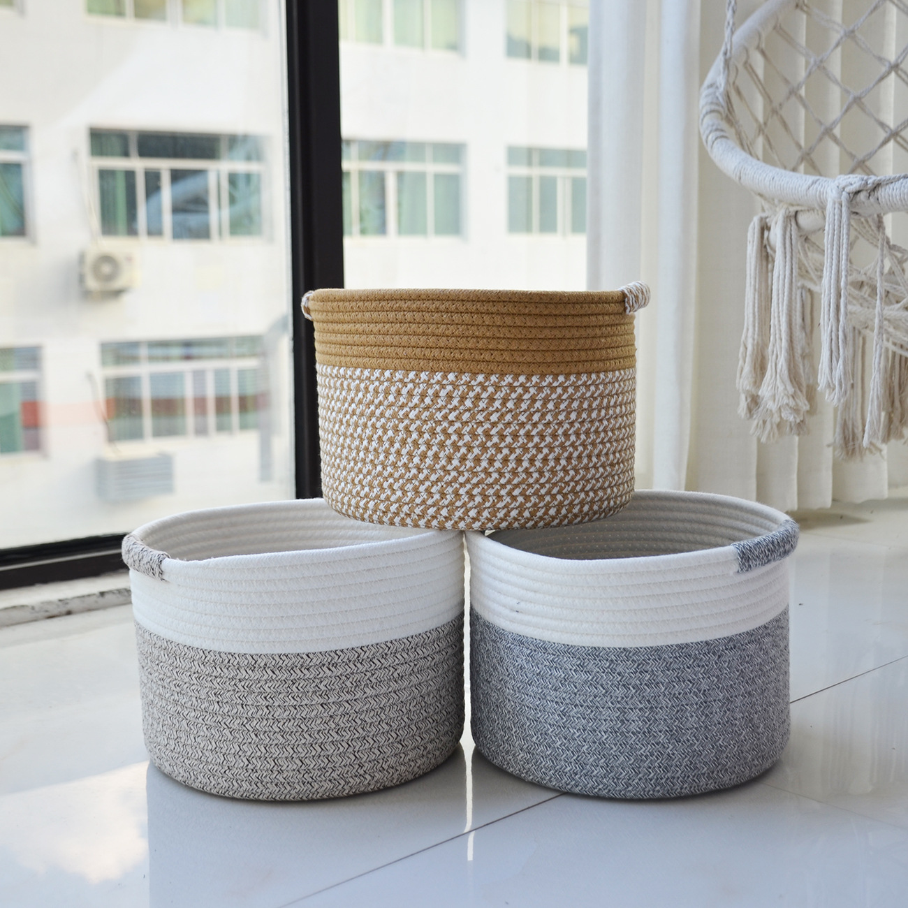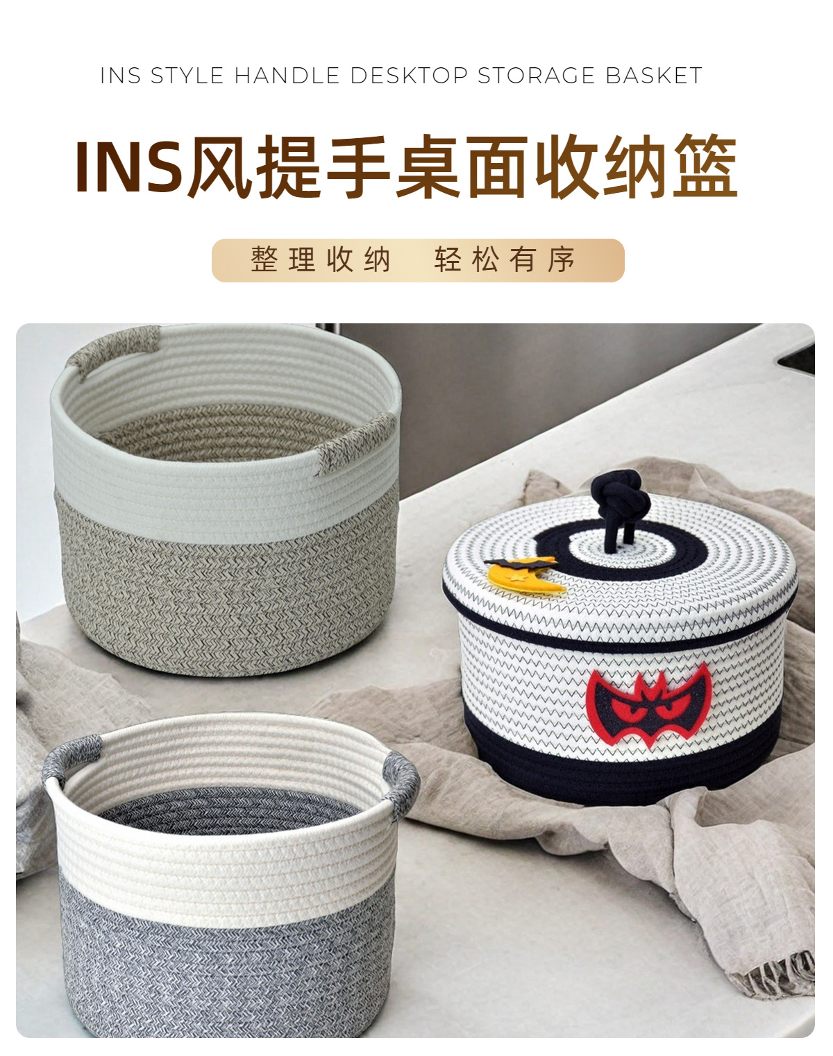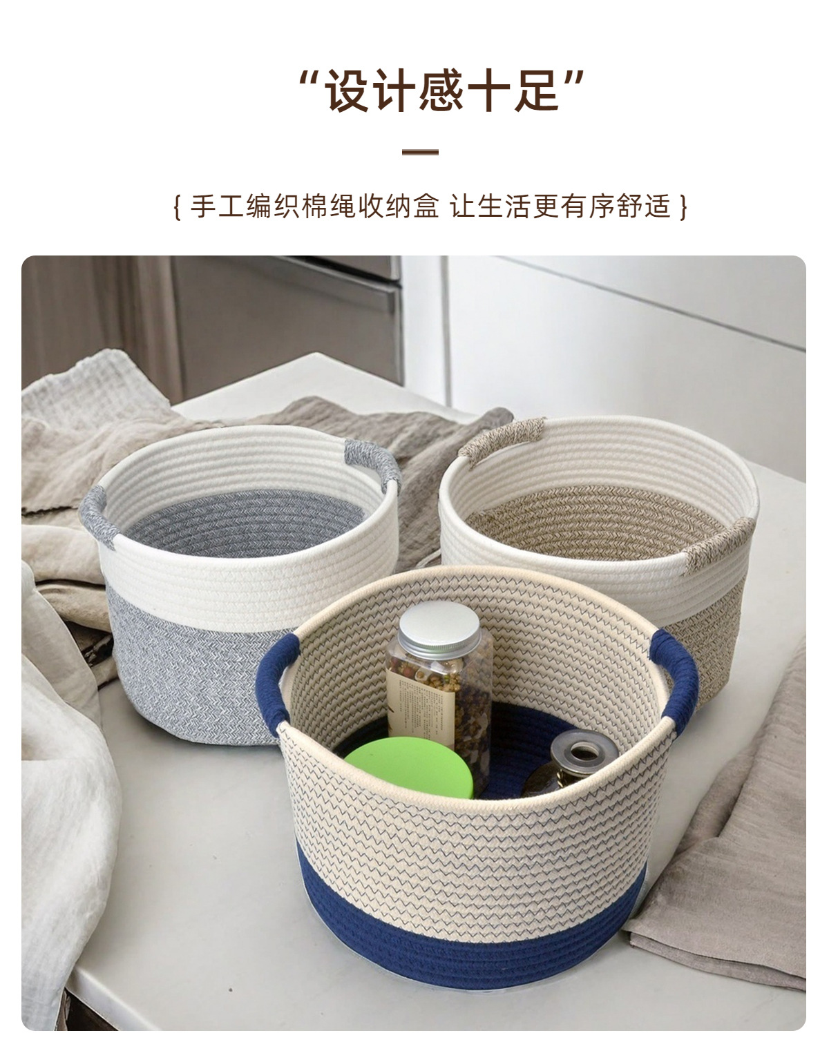 새로운 현대 간단한 스타일 저장 바구니 목화 밧줄 저장 바구니 장난감 간식 가정 용품 보관 바구니 더러운 옷 바구니