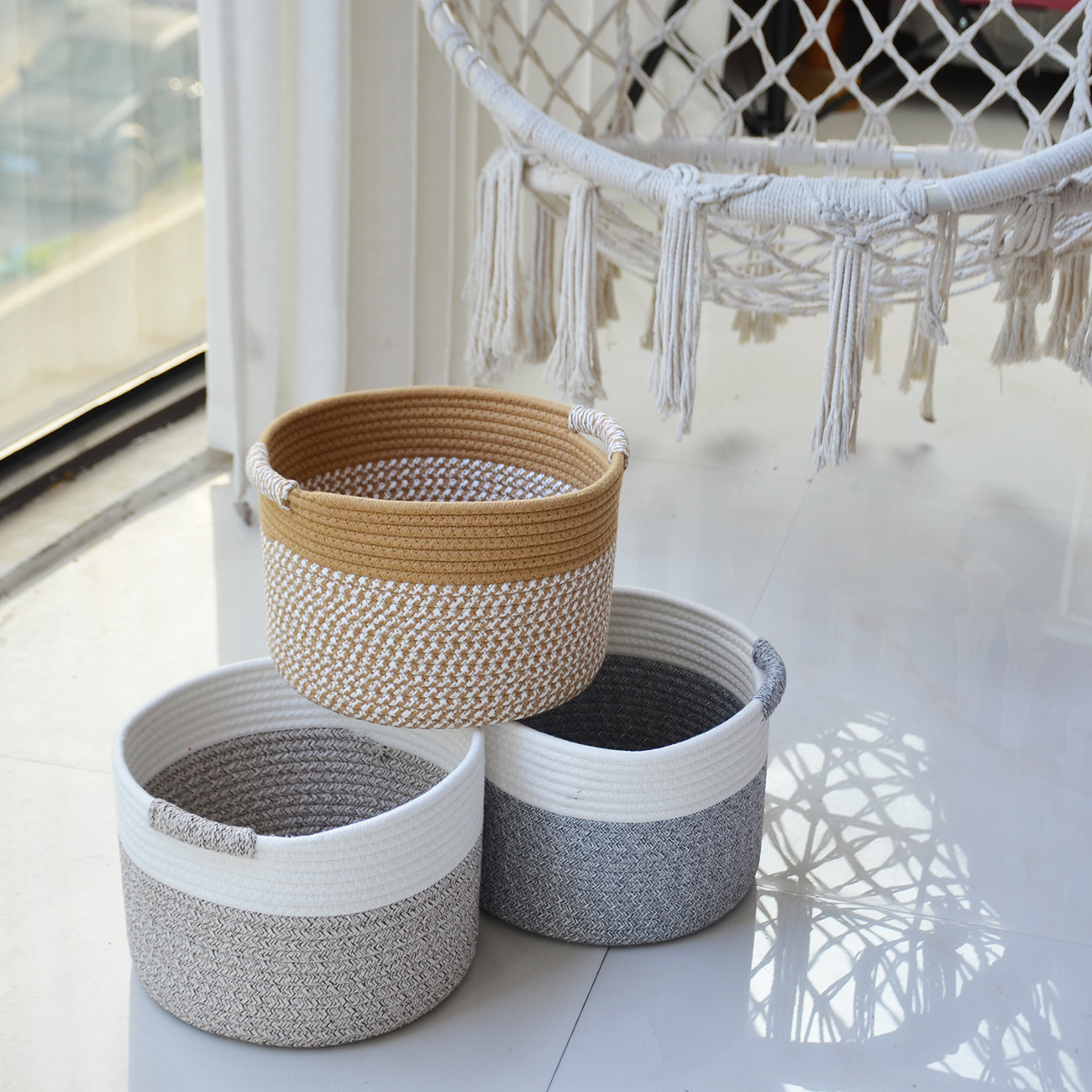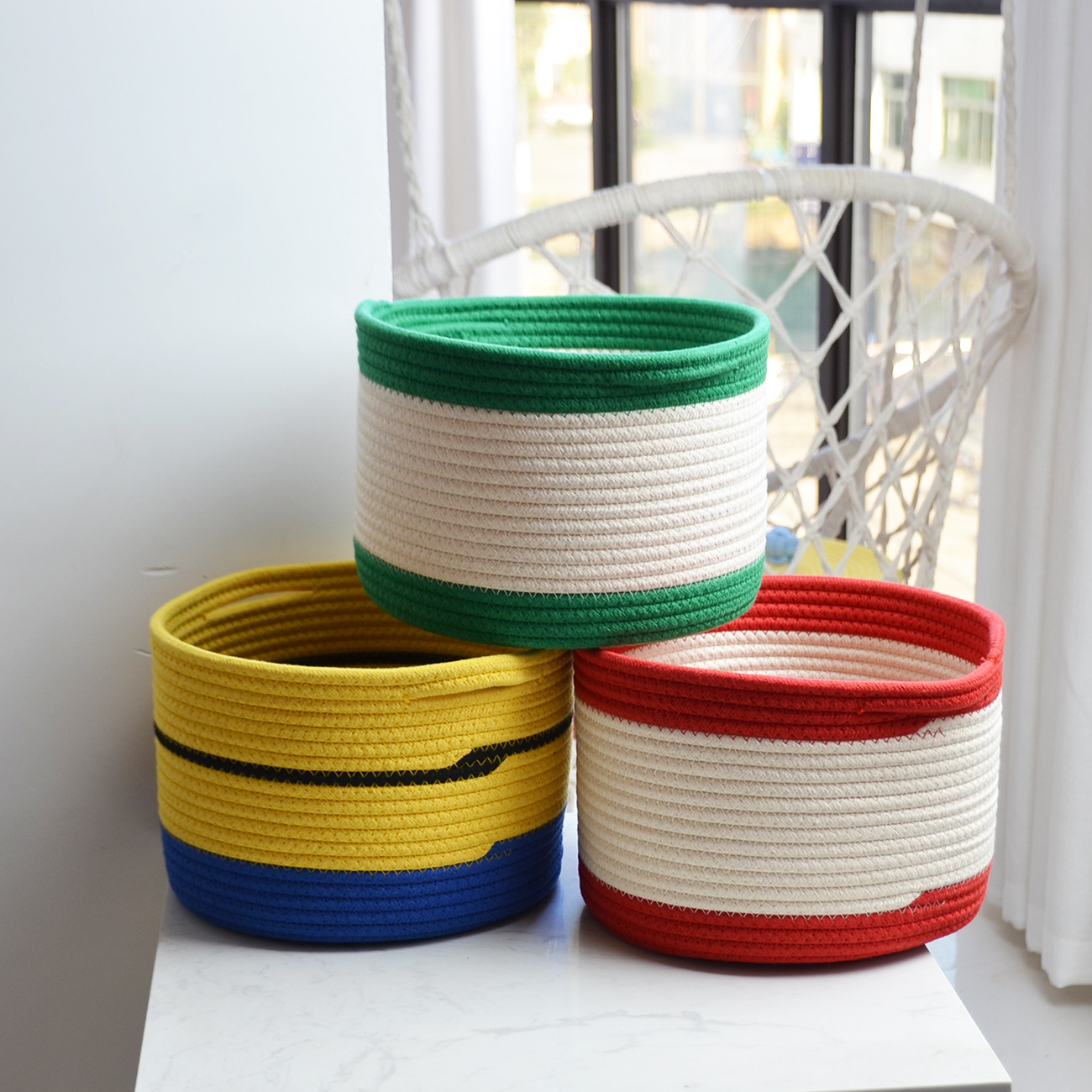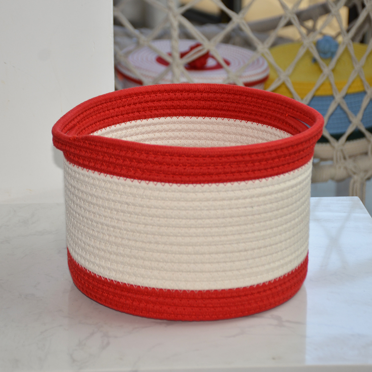 새로운 현대 간단한 스타일 저장 바구니 목화 밧줄 저장 바구니 장난감 간식 가정 용품 보관 바구니 더러운 옷 바구니