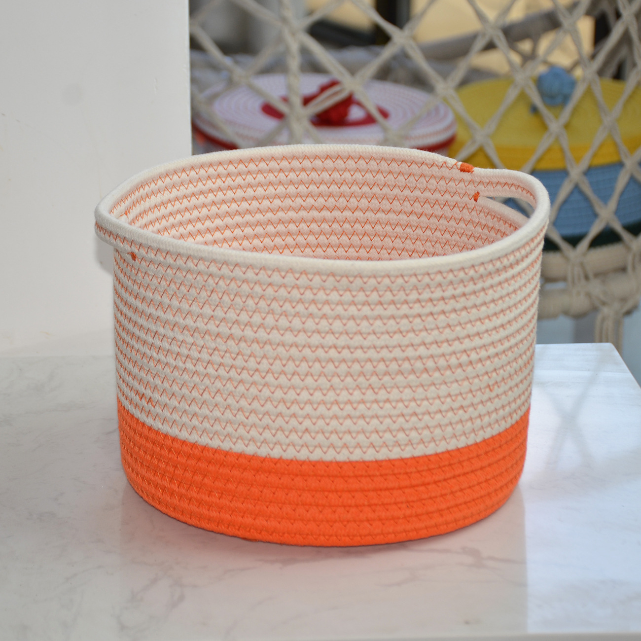 • 컬러풀한 손잡이 수납바구니 (입지름 25cm, 높이 18cm)
