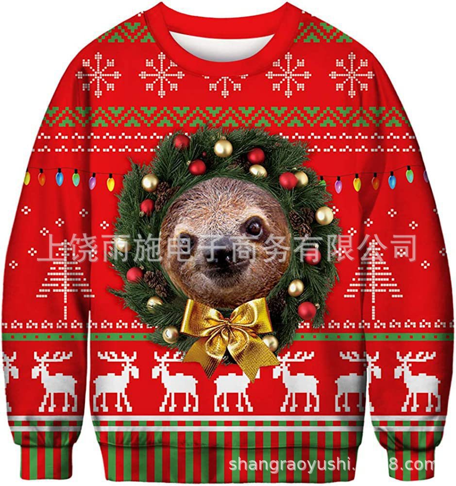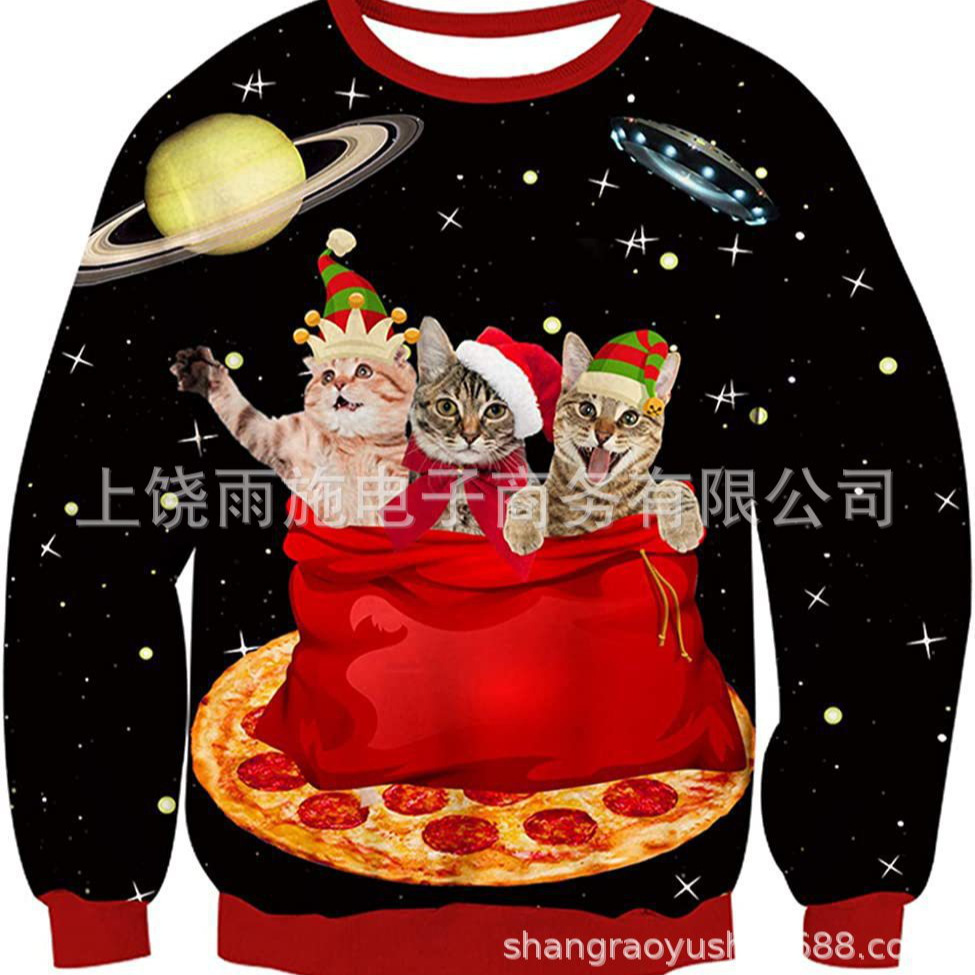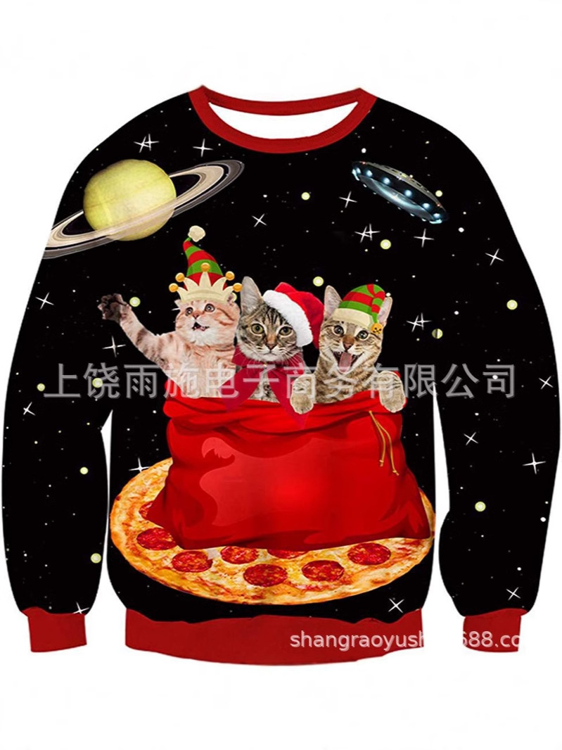 크리스마스용 유럽 및 미국 스타일의 따뜻한 스웨트셔츠, 재미있는 게으른 고양이 요소 포함스토어 가기