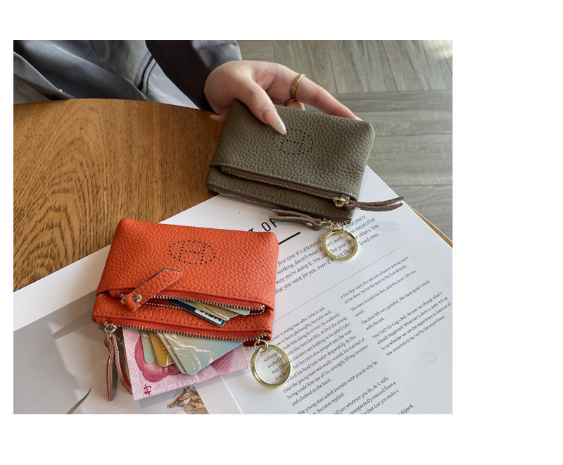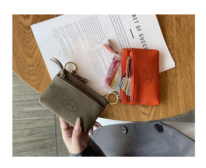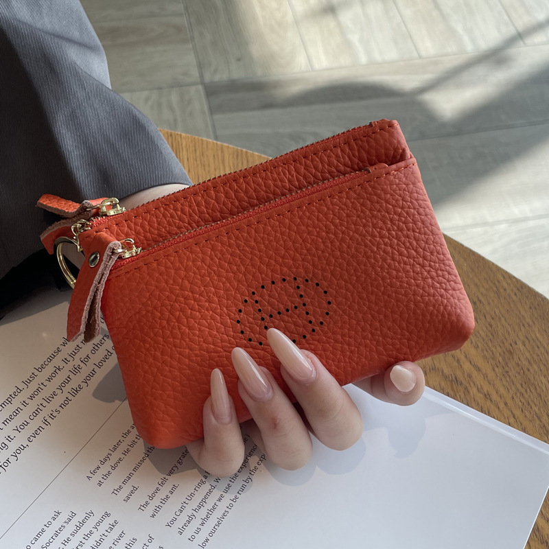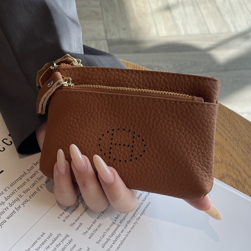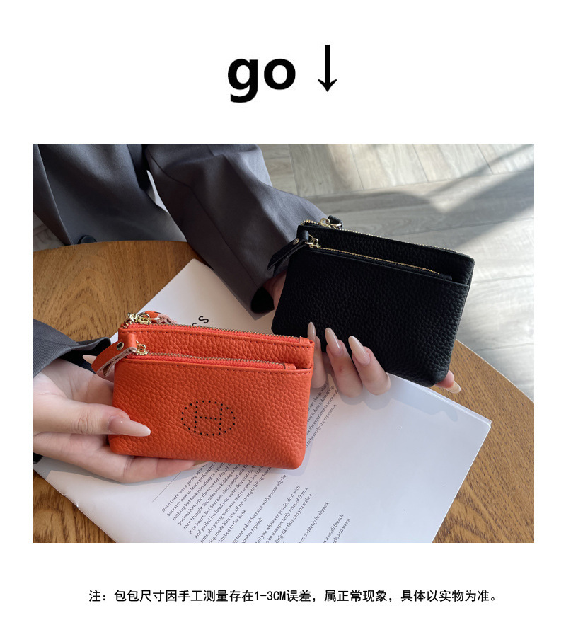 2024 새로운 정품 가죽 여성 동전 지갑 탑 레이어 Cowhide 절묘한 고급 이중 지퍼 대용량 키 여성용 소형 가방스토어 가기