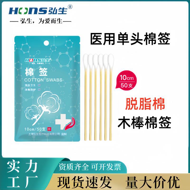 Hongsheng 의료용 면봉 싱글 헤드 50 팩 가정용 상처 청소 일회용 청소 및 소독 면봉 면봉스토어 가기