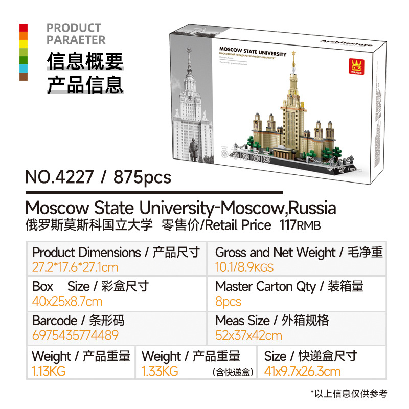 Wange 러시아 모스크바 국립 대학 작은 입자 조립 빌딩 블록 어린이를위한 교육 장난감 4227스토어 가기