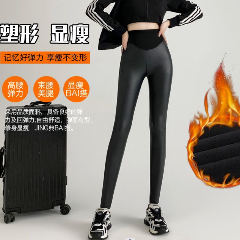 가을과 겨울 얇은 벨벳 가죽 바지 여성의 높은 허리 캐주얼 바지 꽉 따뜻한 매트 가죽 바지 서양식 레깅스스토어 가기