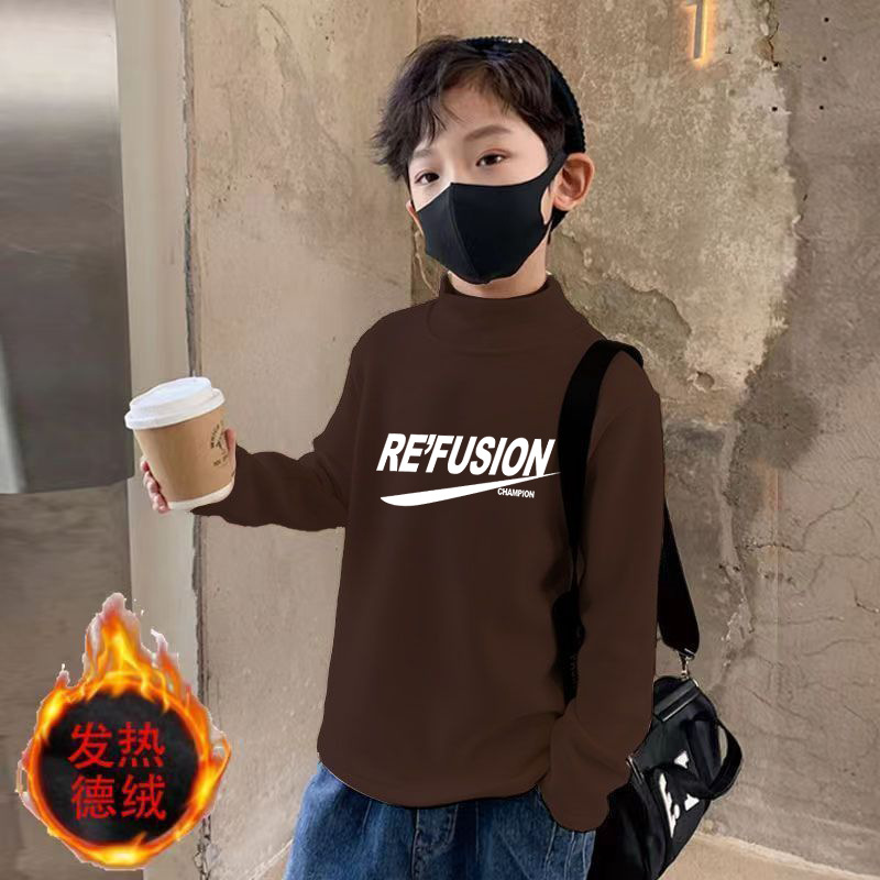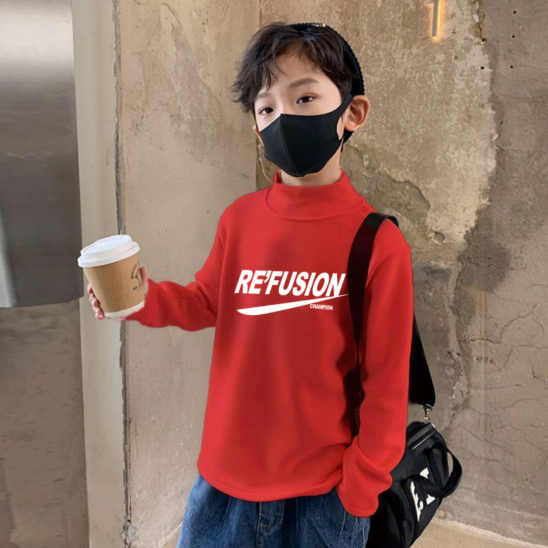 Y2194 # 소년 세미 하이 칼라 바닥 셔츠 조커 가을과 겨울 새로운 대형 어린이 패딩 이너 셔츠 드 벨벳