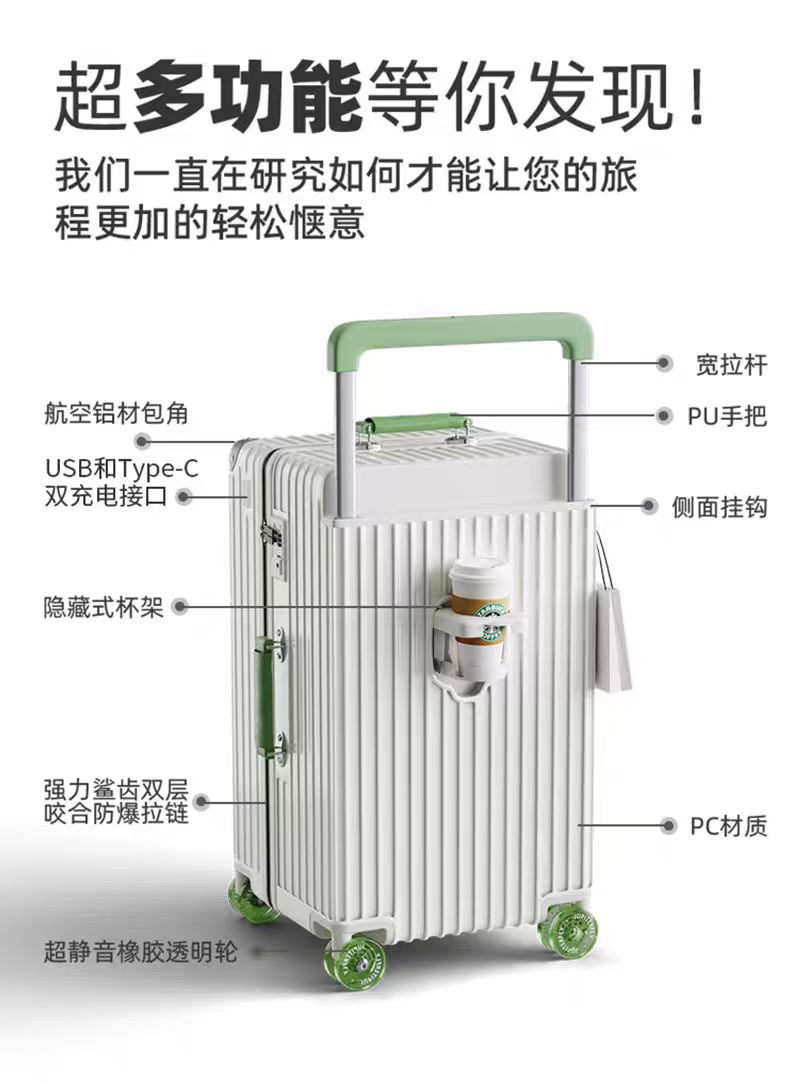 Fat Box 와이드 트롤리 가방 2024 새로운 다기능 가방 30inch 대용량 비밀번호 상자 수출