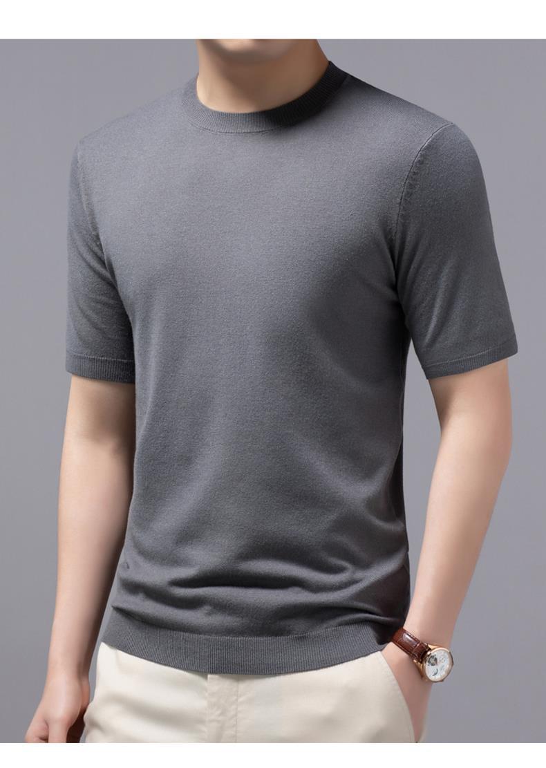 뉴 벨벳 남자 스웨터 니트 울베이스 셔츠 스웨터 반팔 반소매 풀오버 루즈 트렌디 라운드 넥 카멜 그레이스토어 가기